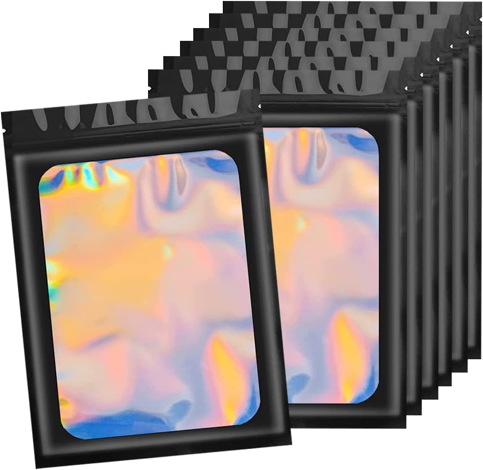10.5x10cm 50 Grip Foil Ziplock Bags, Black Small Clear Plastic Bags, Resealable Storage Pouches, Poly Zip Lock Bags, Perfect for Kitchen Storage, Jewellery, Diamond Painting, Small Cookies and Sweets