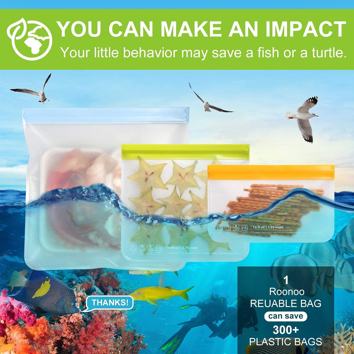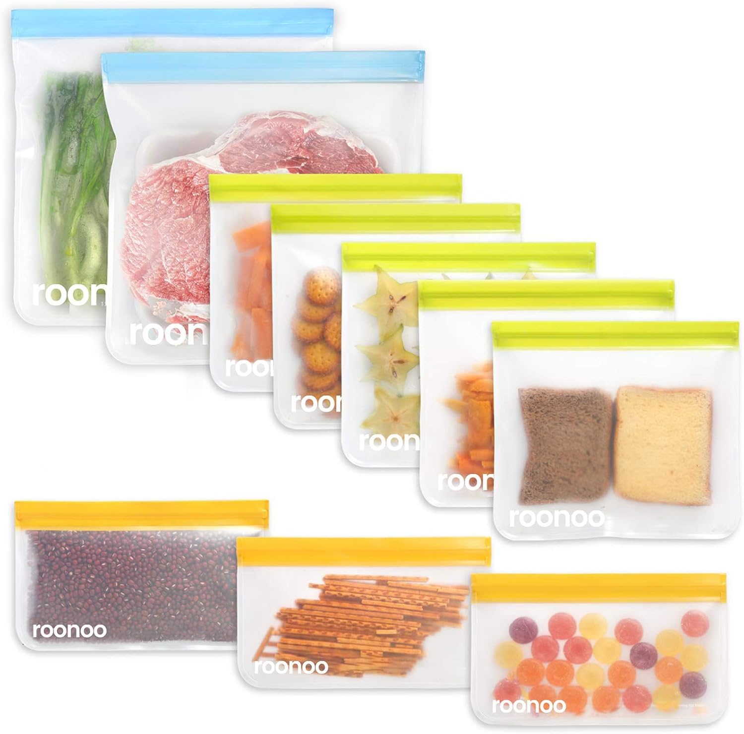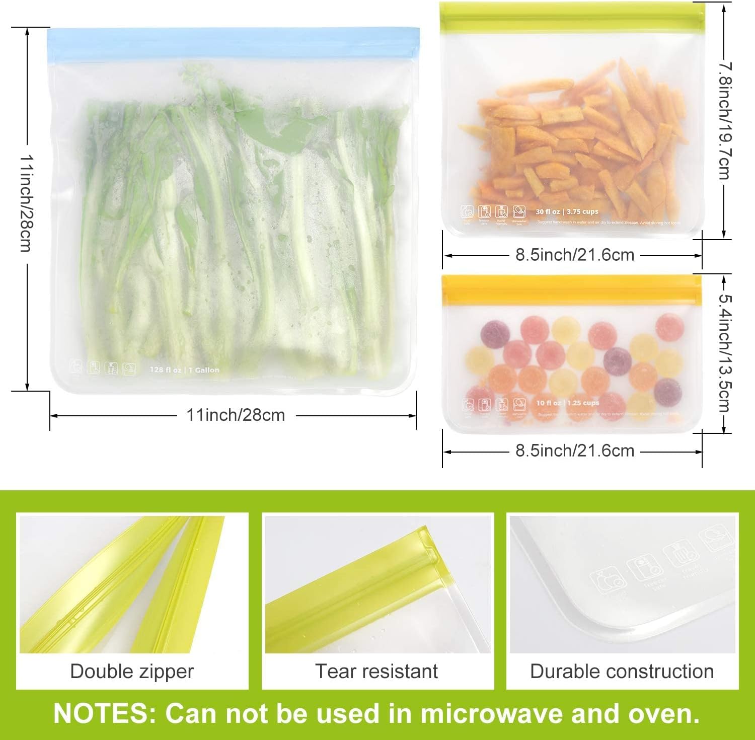 10 Pack Dishwasher Safe Reusable Food Storage Bags (5 Sandwich, 3 Snack, 2 Gallon Bags), BPA Free Extra Thick Leakproof Silicone & Plastic Free Zip-lock Bags