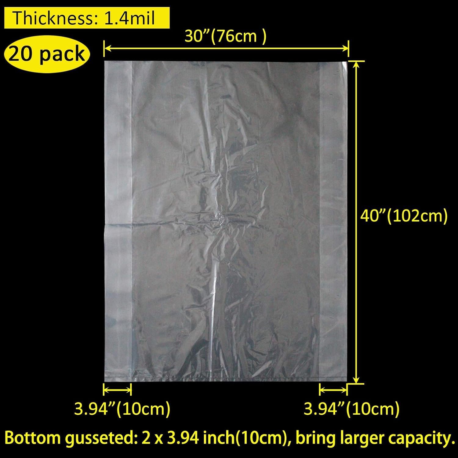 10 Pcs 30 x 40 inch(76 x 102 cm) Large Clear Plastic Bags Clear Plastic Flat Poly Bags 1.4 Mil Flat Open Poly Bag for Storage, Clothes Packaging, Suitcase, Plush Toys and More