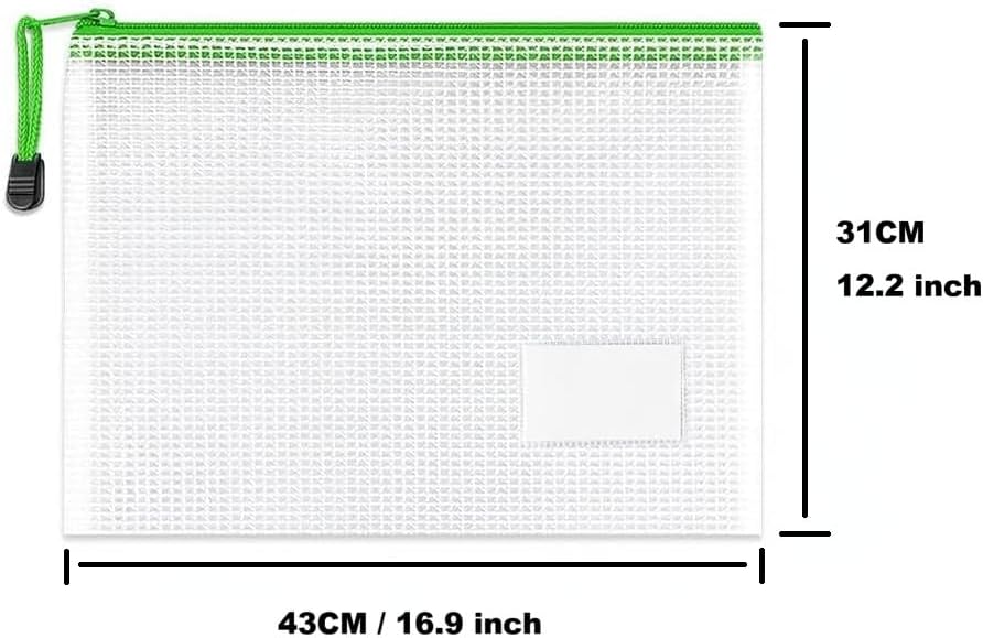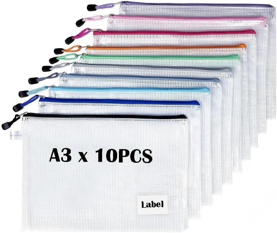 10 PCS A3 Zipper Wallets with Label Pocket – TRANBO Large Zip-Lock Pouches, Plastic Folder Bags for School Home Office Storage, Travel Document, Luggage Organizer – 43×31 cm