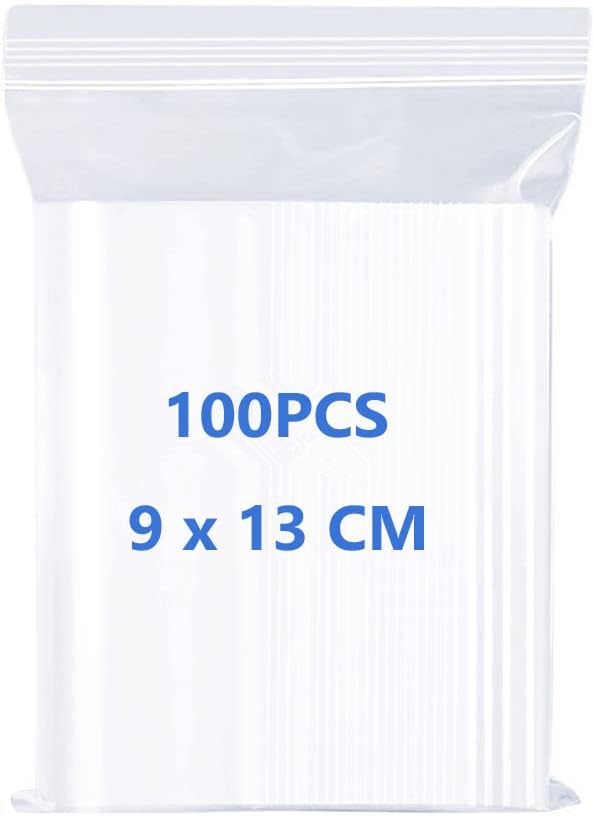 100 Grip Seal Bags Resealable Zip Lock Poly Bag 9 X 13cm Small Plastic Bags, Clear Reusable Jewelry Zipper Bag for Beads Medicine Snacks Seeds Coins