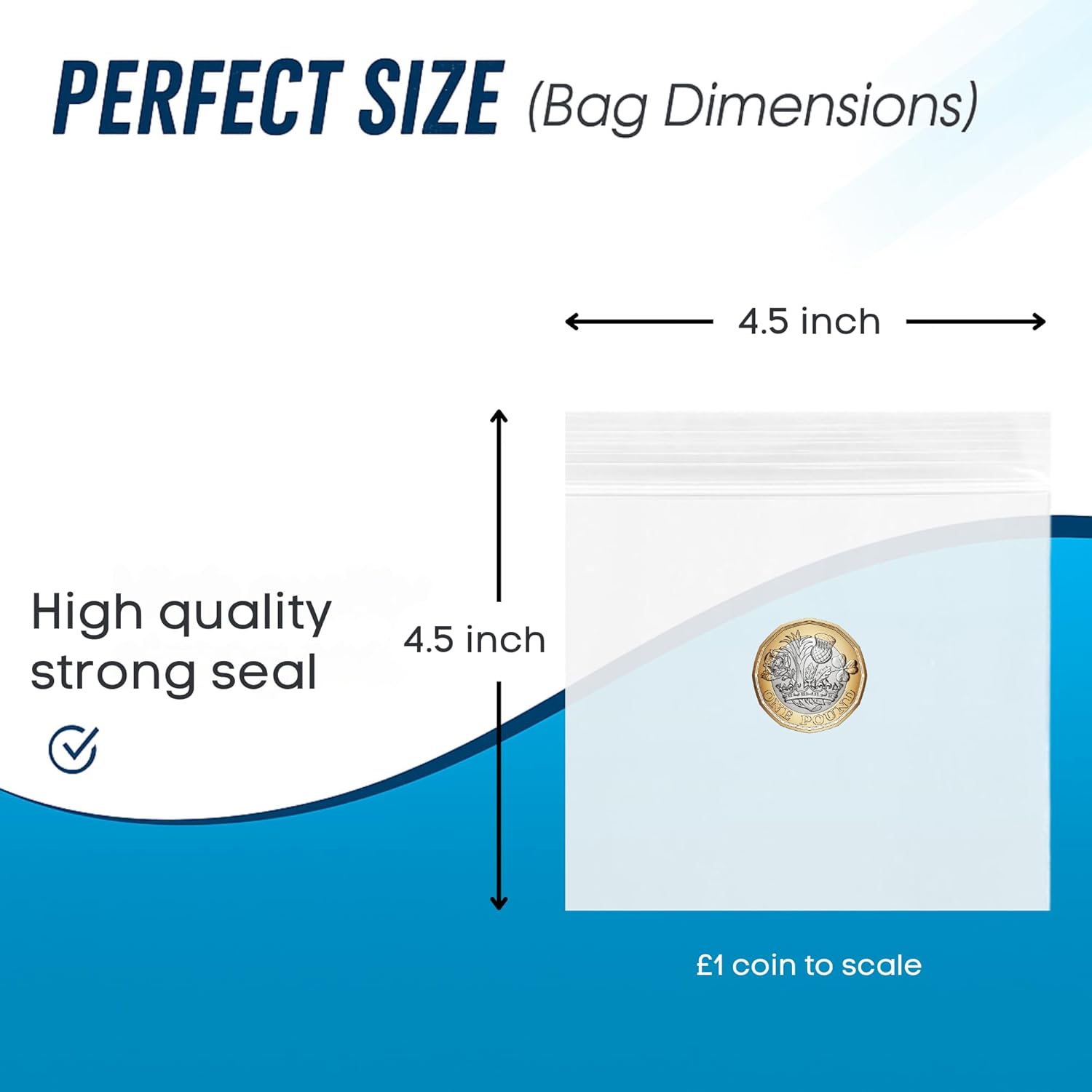 100 Grip Seal Freezer Bags *CHOOSE YOUR SIZE*| Strong Resealable and Reusable Clear Plastic Zip Lock Bags |Used for Food Storage Jewellery Medicine (4.5 x 4.5 Inch)