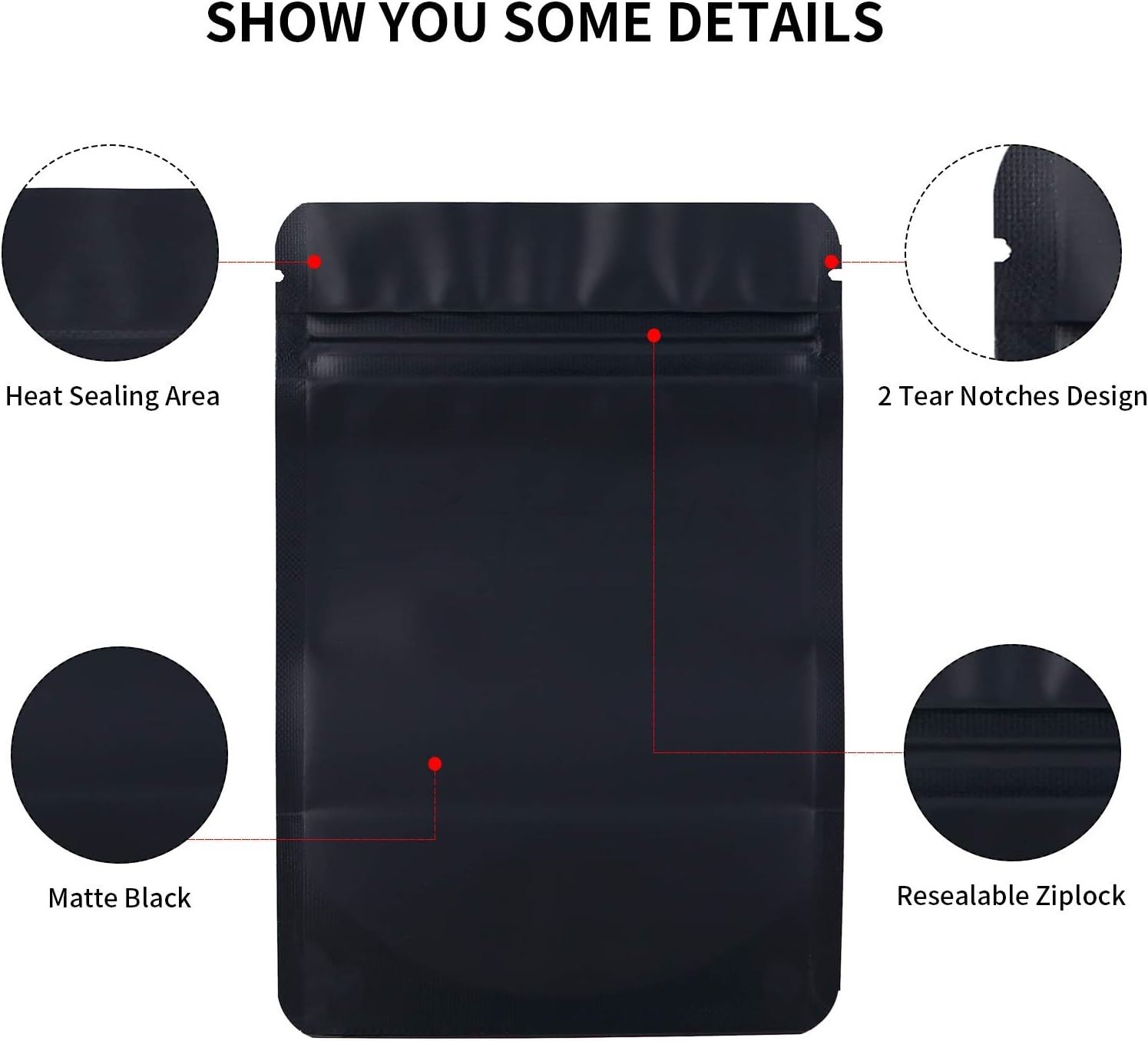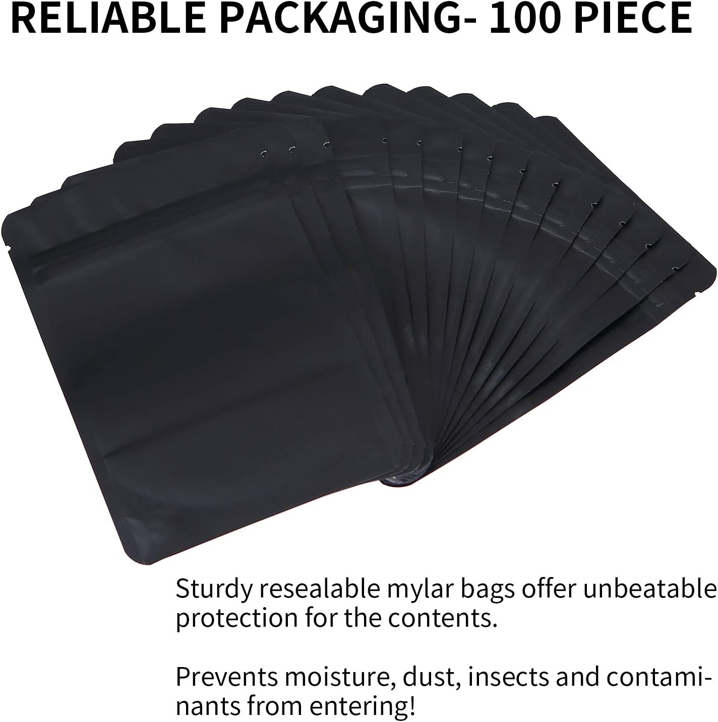 100 Pack Mylar Smell Proof Bags, Foil Ziplock Baggies, Resealable Stand Up Packaging Pouch for Food Storage, Candy, Cookie, Bath Salts (4 * 6inch, Black)