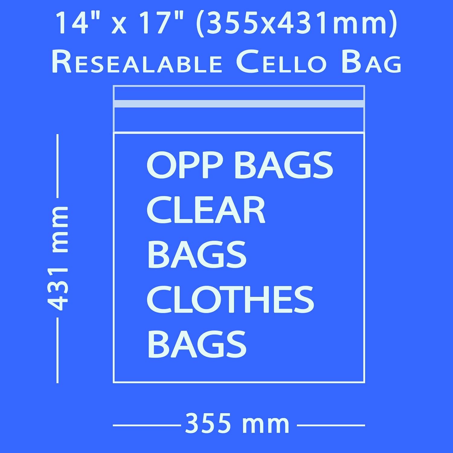 100 Self Seal Clear Cellophane Plastic Bags – Size 14 x 17″ Transparent Poly Bags with Suffocation Warning in 5 Languages – Display Garment Packaging