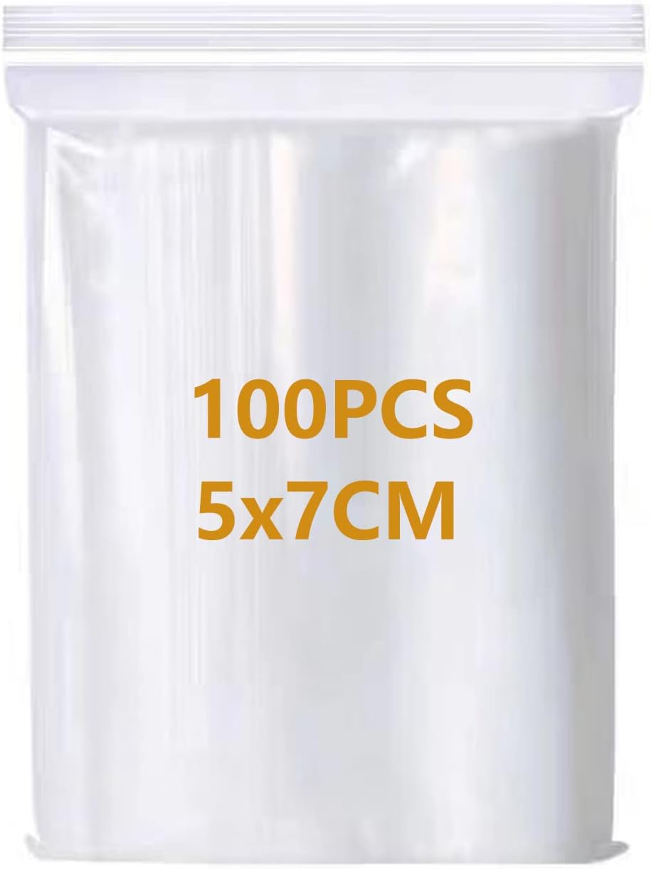 100 Small Plastic Bags – Ziplock Grip Seal Bags, Resealable Clear Mini Transparent Baggies, Poly Zip Lock Sealable Storage Pouches Jewellery Drugs Candies Spice, 1.97”x2.76”(50x70mm)