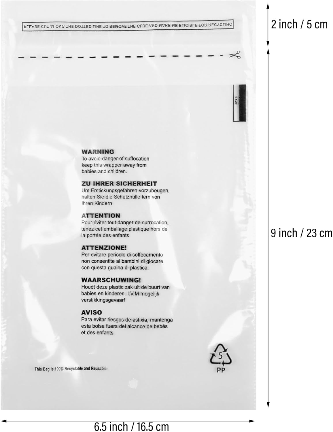100 x Self Seal Clear Cellophane Plastic Bags with Suffocation Warning in 5 Languages, FBA Polybags, Transparent Packaging Poly Bags (6.5″ X 9″)