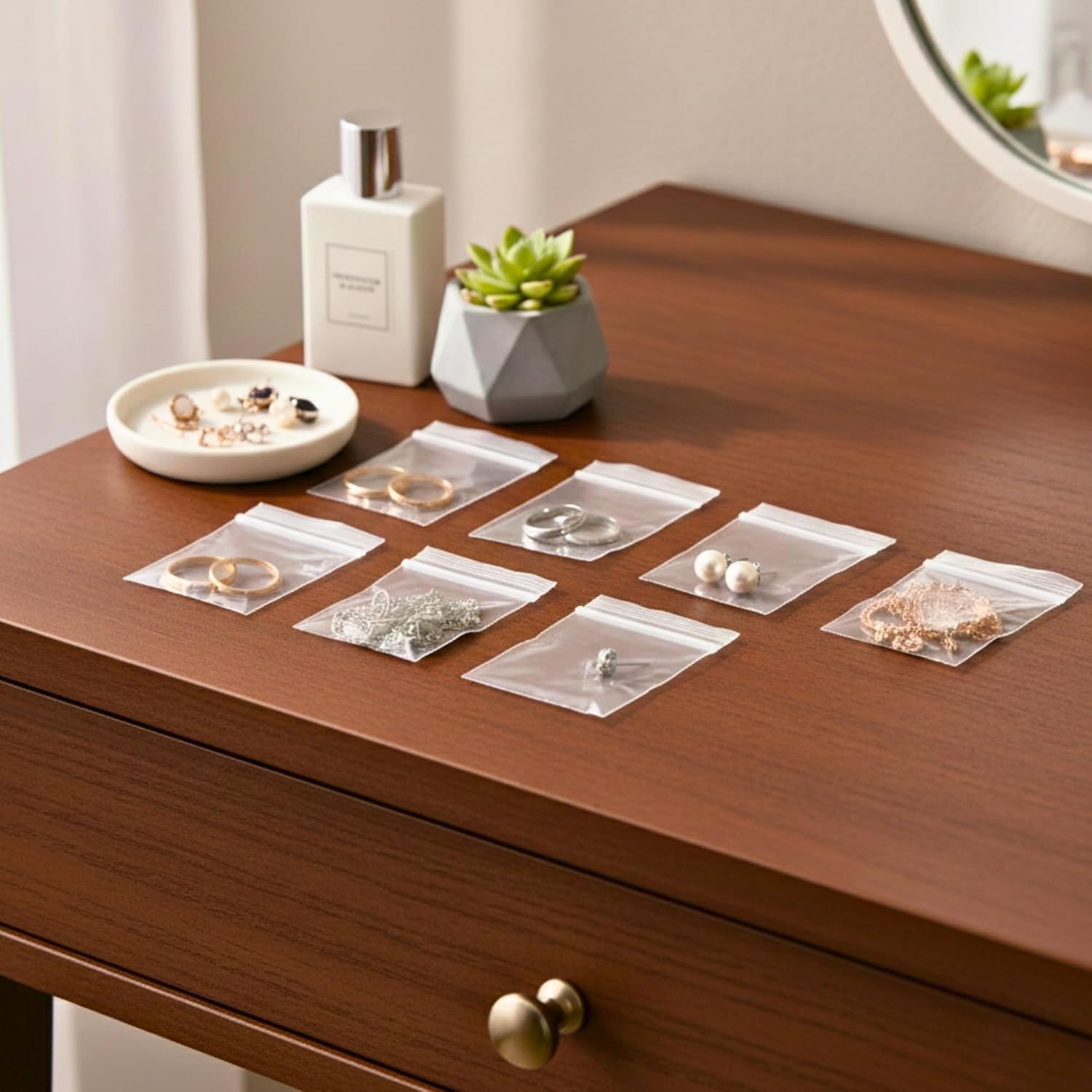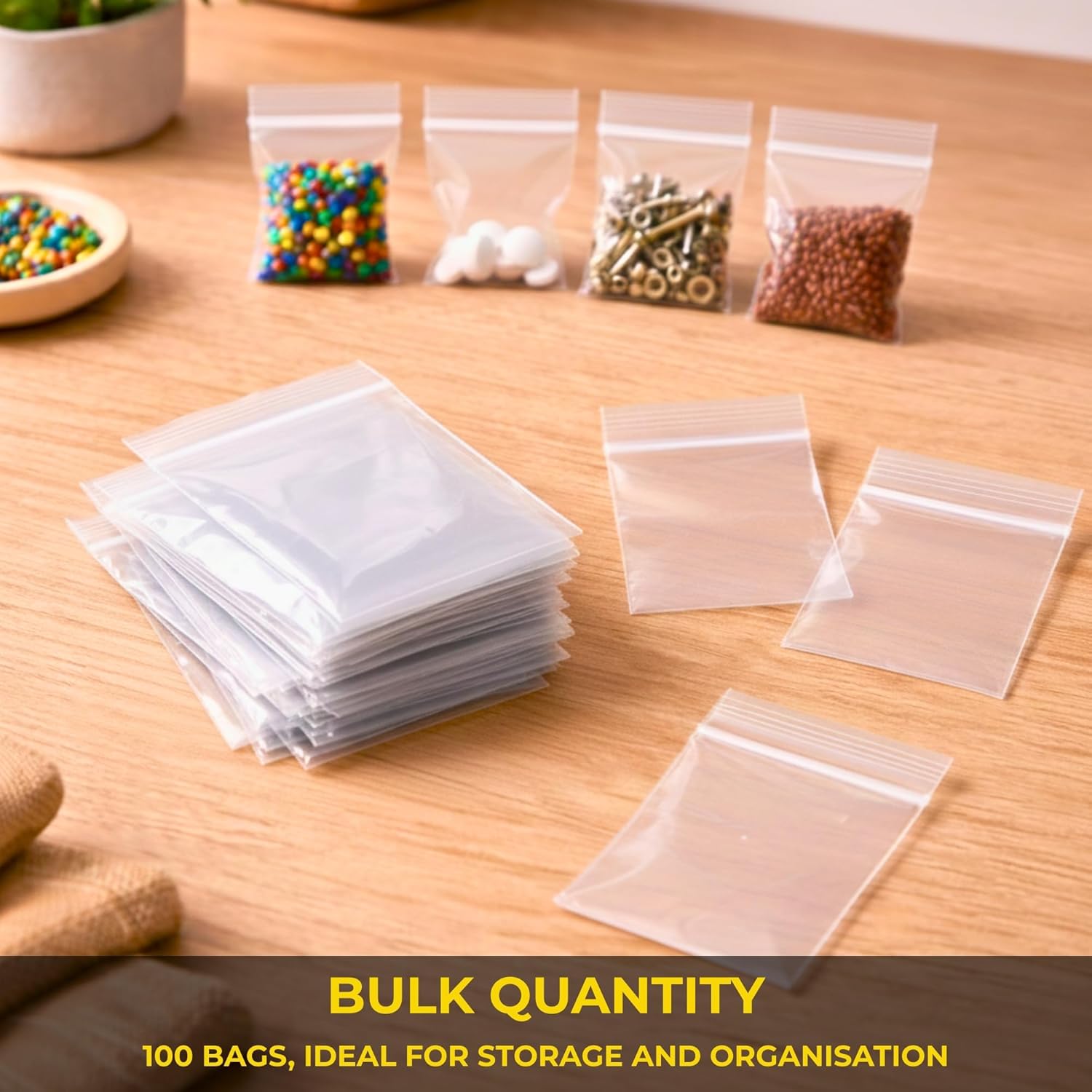 100 Zip Seal Bags Clear Plastic Zip Lock Food Storage, Small Plastic Pouches with Zips, Self Seal, Resealable Packaging for Freezer, Jewellery, Medicine, Office, Mailing and Craft Use 1.5 x 2.5 Inch