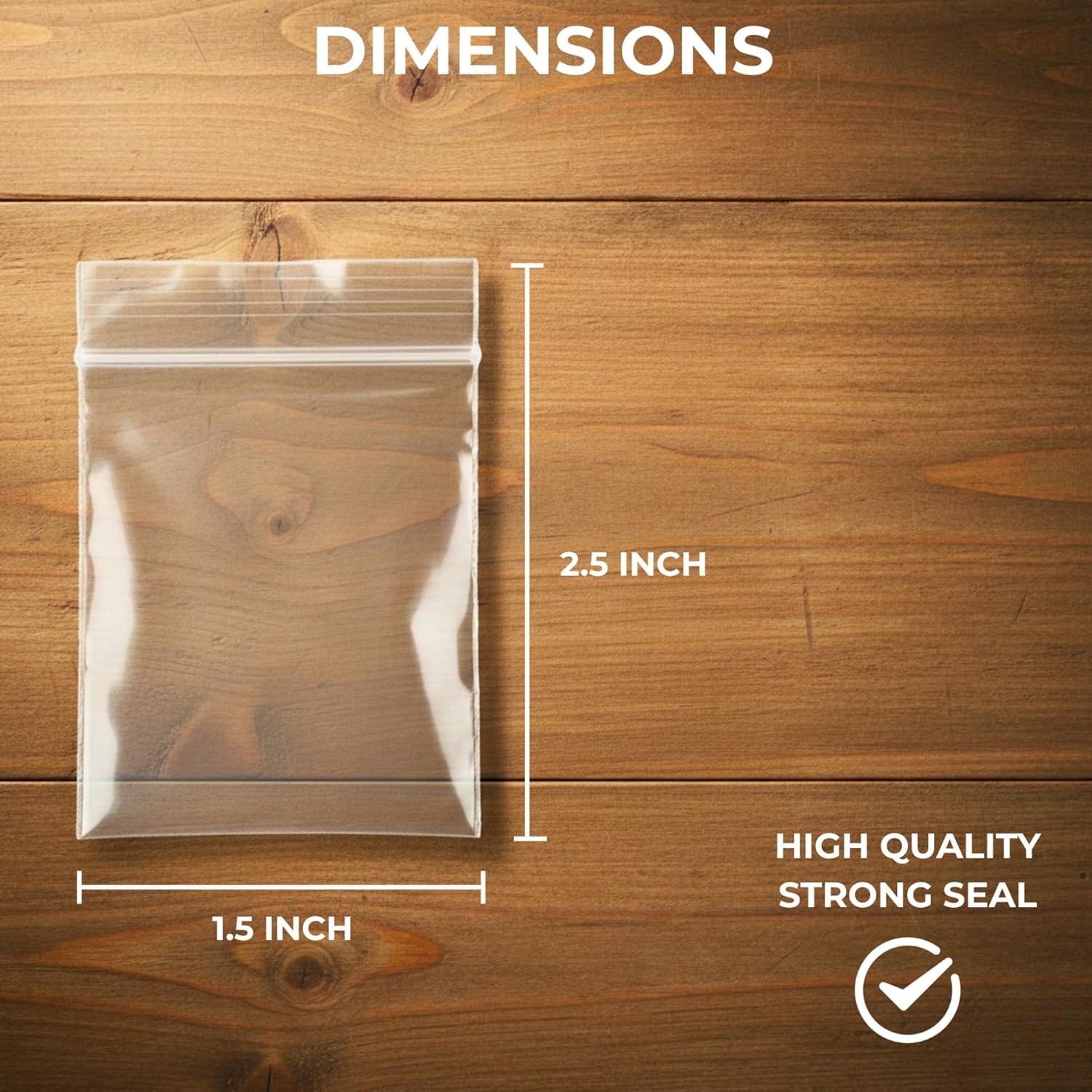 The zip lock bags measure 1.5 x 2.5 inches.