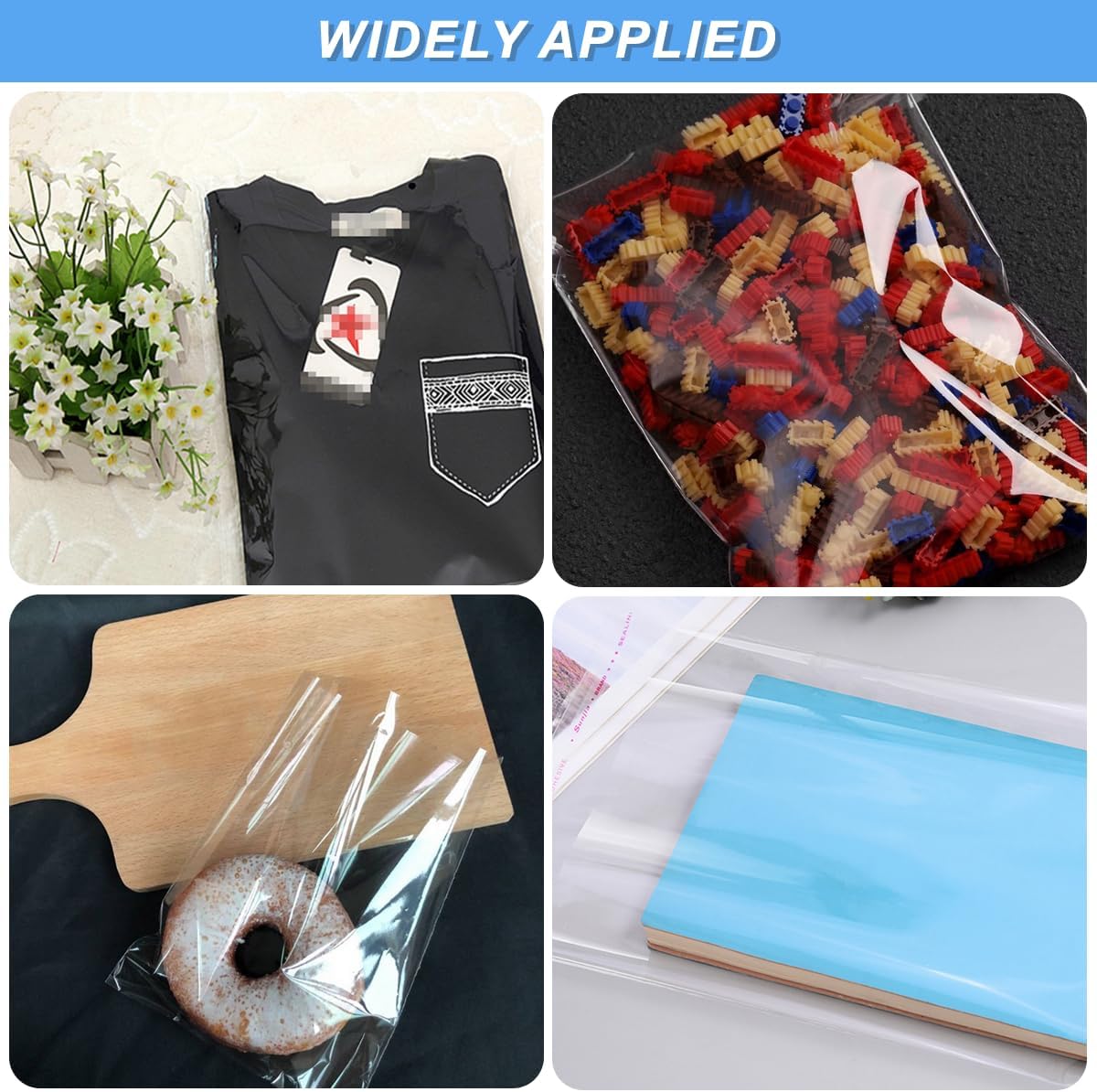 The bags are made of clear, sturdy plastic (OPP) that provides good sealing and protection.