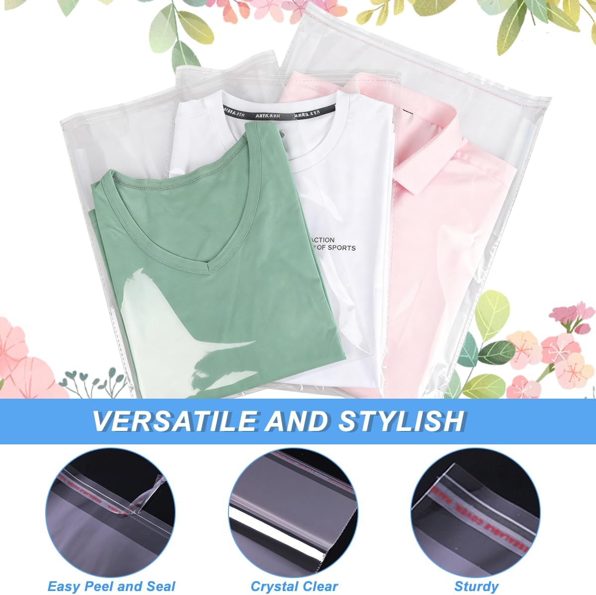 These 100PCS large cellophane bags are perfect for a variety of uses, including packaging clothing, documents, and treats. Made from sturdy plastic, these clear bags feature a self-adhesive closure and a vent hole, ensuring that your items remain secure and visible without needing to open the bag. Their transparent design allows for easy identification of contents, making them ideal for storage and display. Each bag measures 13.5 x 16.14 inches, accommodating items up to A4 size.