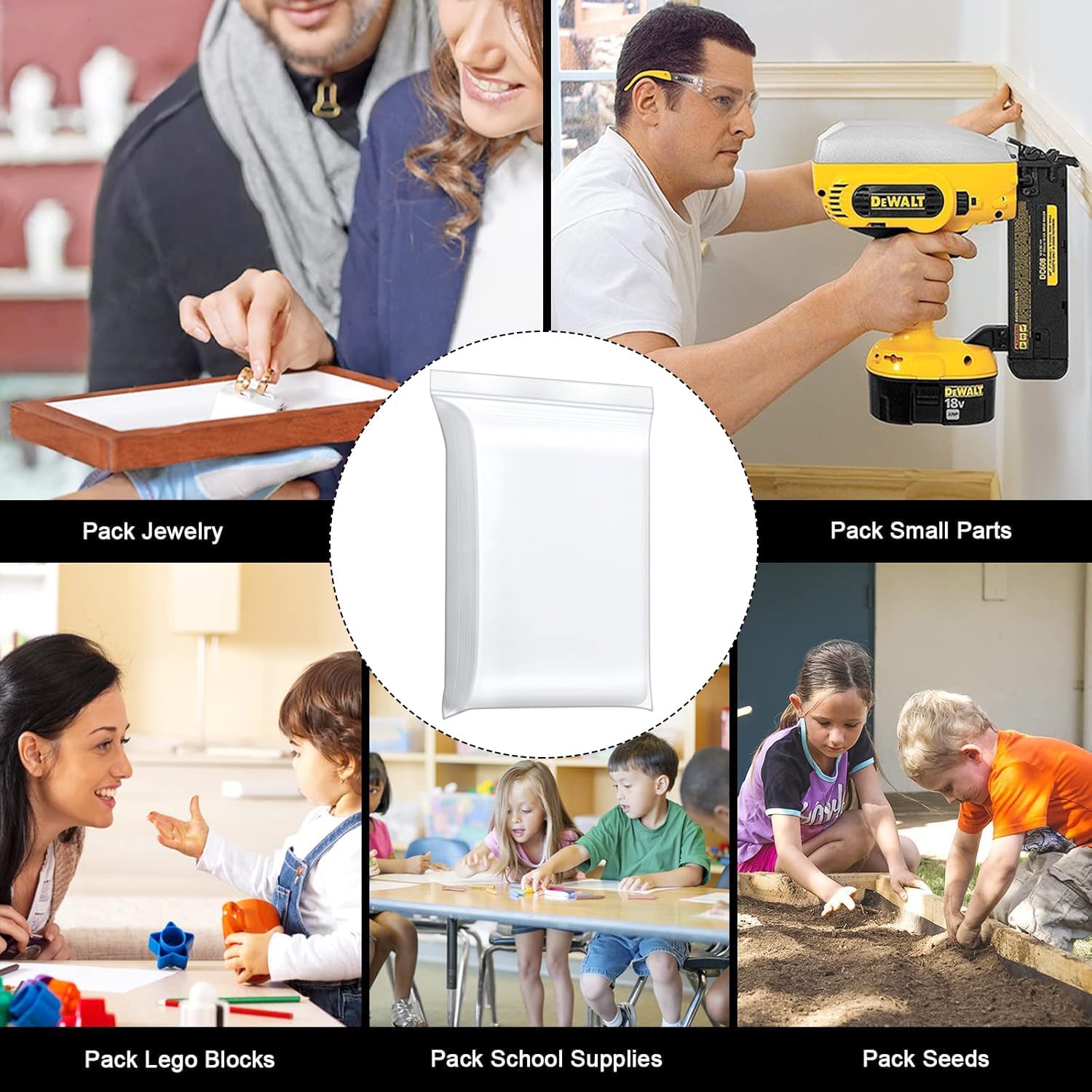 100Pcs Grip Seal Bags Strong Resealable Reusable Clear Plastic Bag Durable Zip Lock Resealable Freezer Bags for Food Storage Jewellery Medicine (3.5 x 4.5 inch)