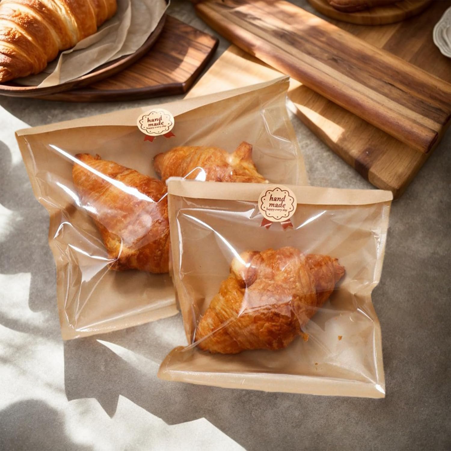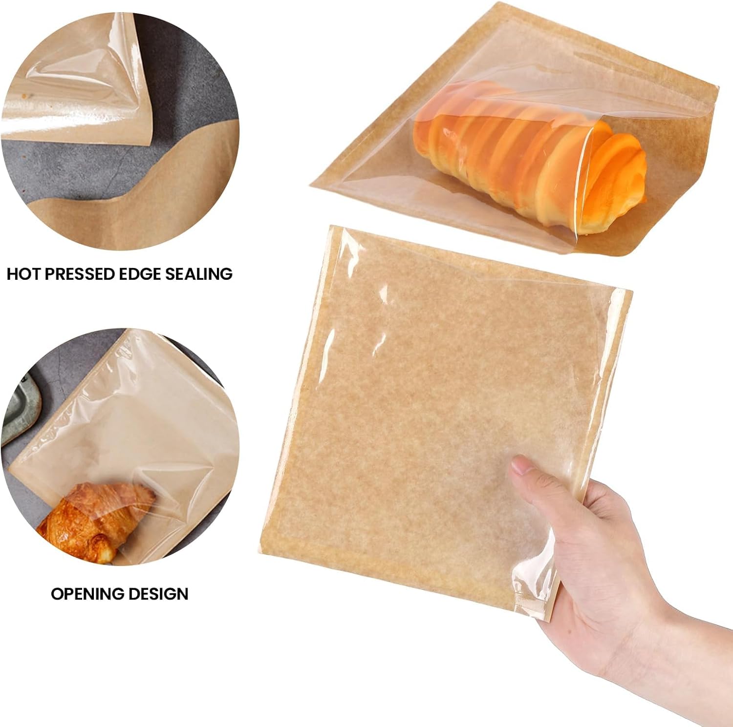 Introducing our 100Pcs Kraft Paper Sandwich Bags, designed for versatility and convenience. Made from sturdy, eco-friendly Kraft paper, these bags are perfect for various occasions such as packing lunches, grocery shopping, or displaying baked goods. The heat sealable design ensures that your food items stay fresh longer, making them an ideal choice for bakeries and sandwich shops.