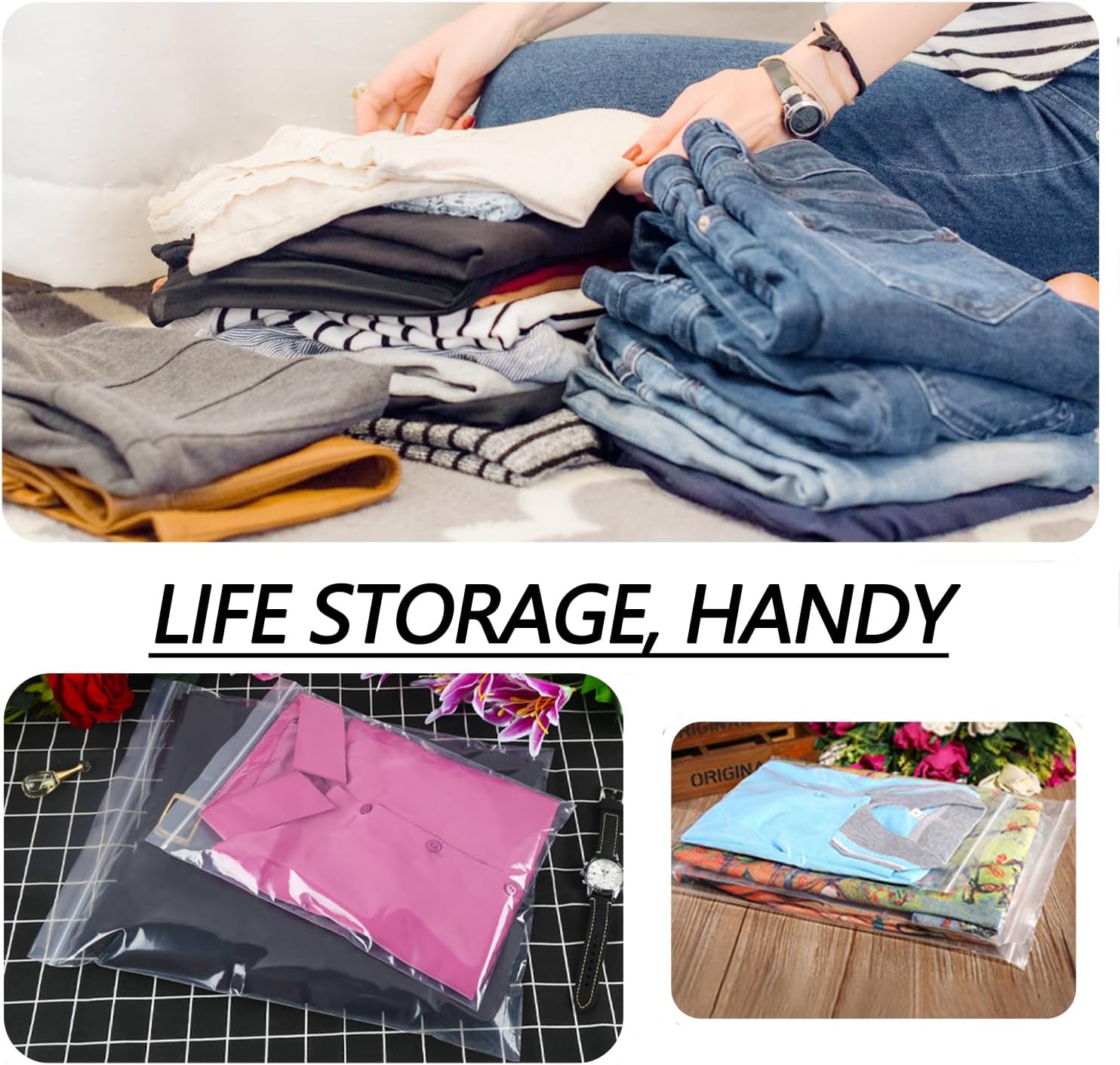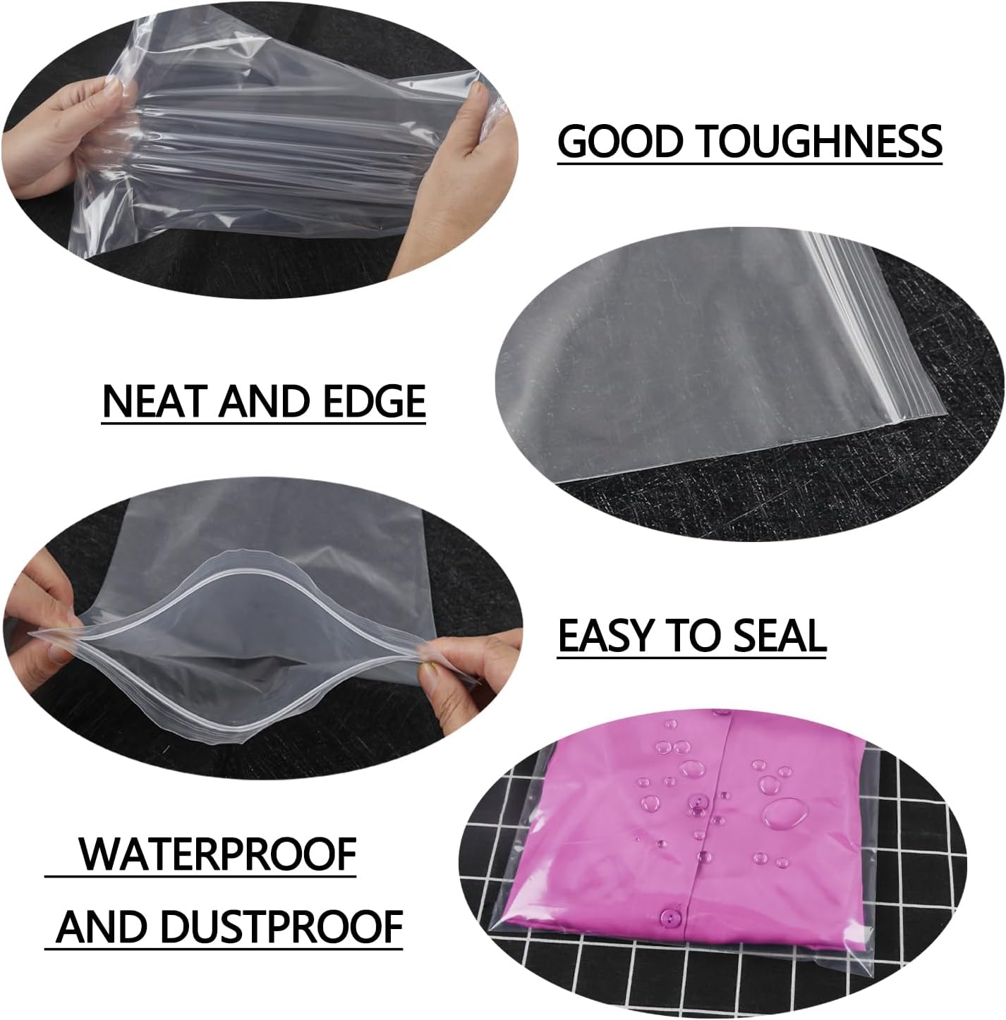 100pcs Plastic Bags Resealable Clear Grip Seal Bags Heavy Duty Thicken 160μm 17cmX25cm Sealable Bags Suitable for Books Documents Clothes Jackets Shirts Hats Scarves Shoes Travel Storage