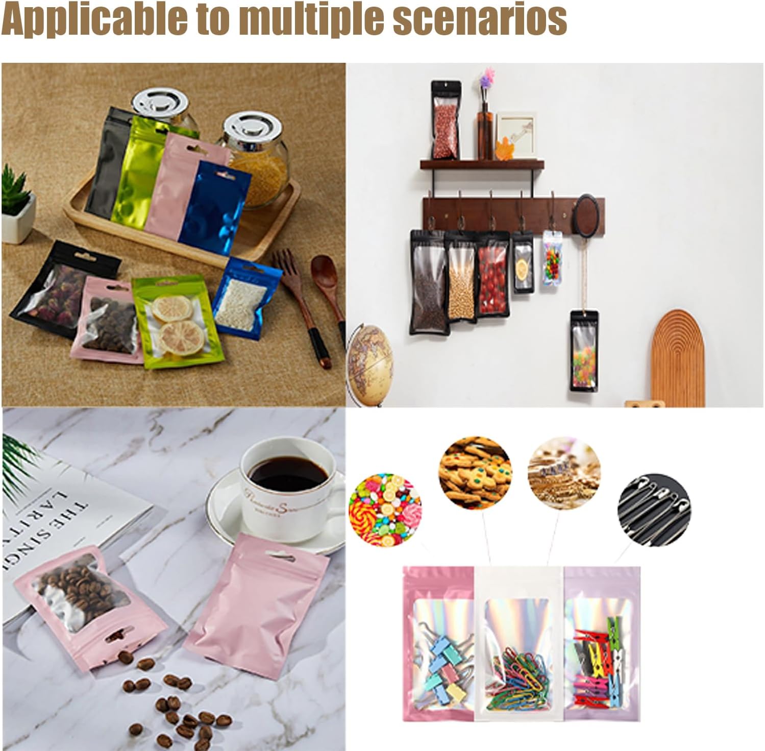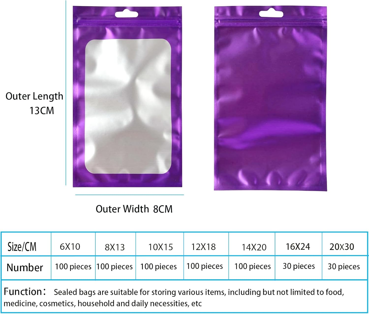 These bags come in a vibrant purple color with a transparent front, allowing you to showcase your items clearly. Perfect for storing various products, they can hold snacks, jewelry, and more. Their resealable design ensures that your items remain fresh and protected.