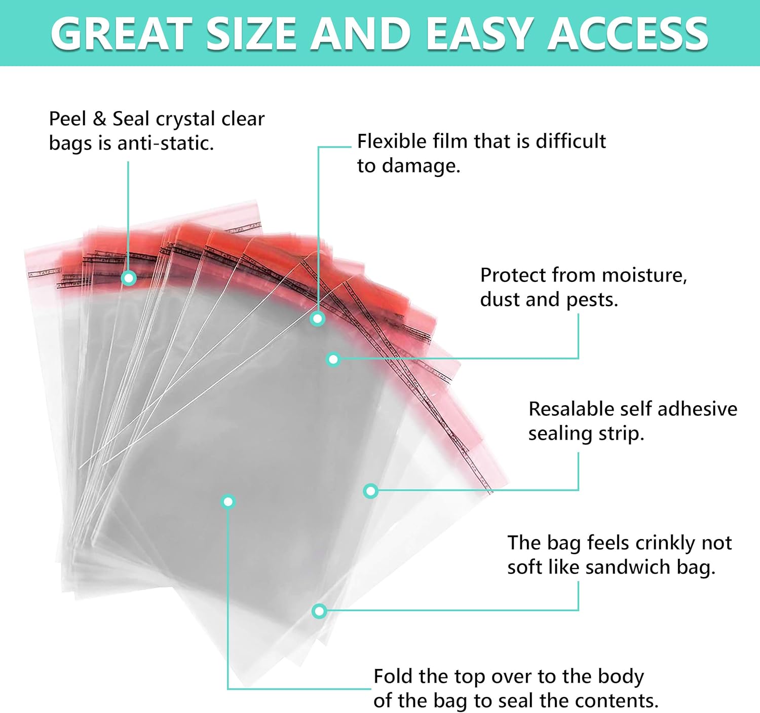 100pcs Self Adhesive Bags Transparent Self Closing Cellophane Bags with Peel & Seal Closure Size 15cm x 20cm + 3cm Flap