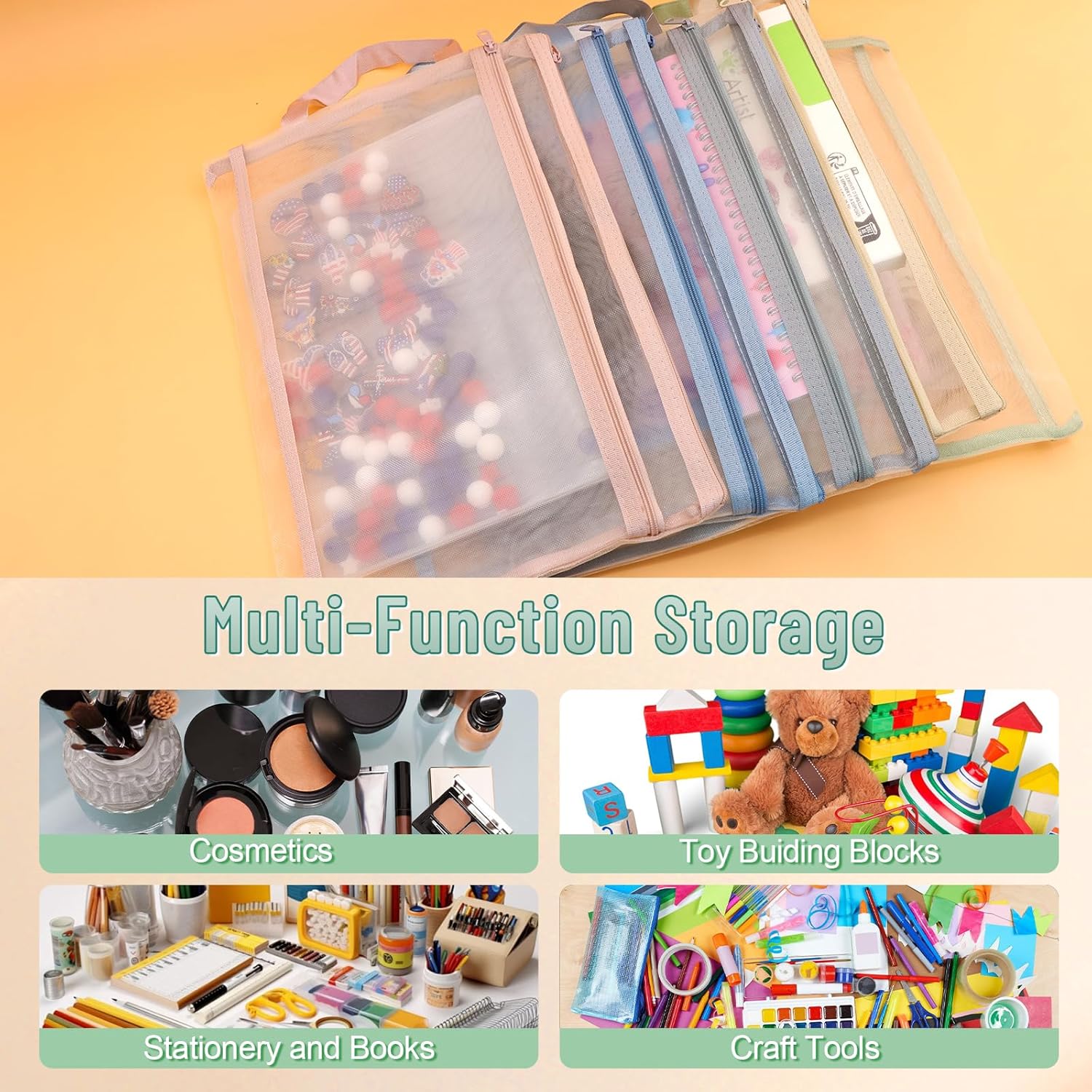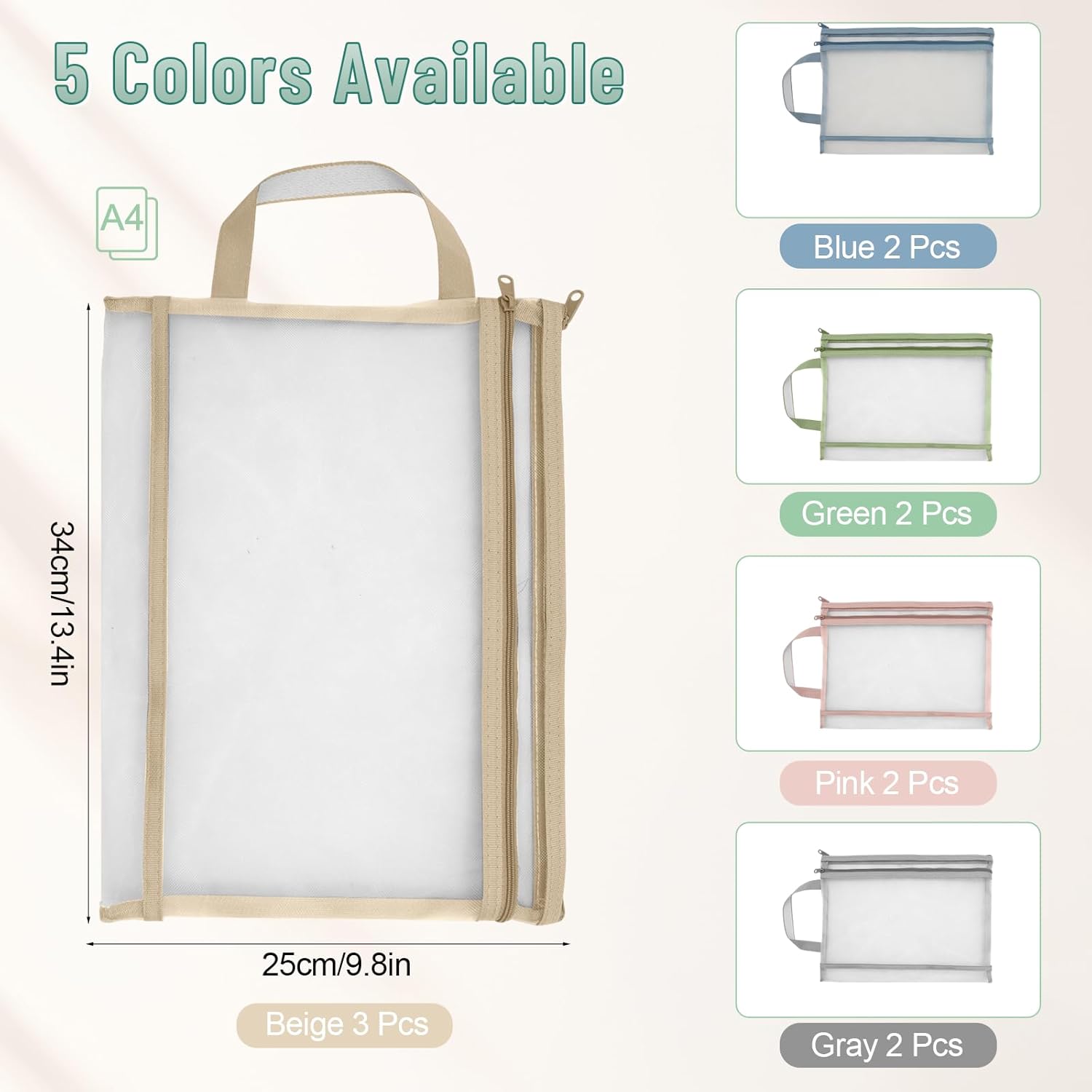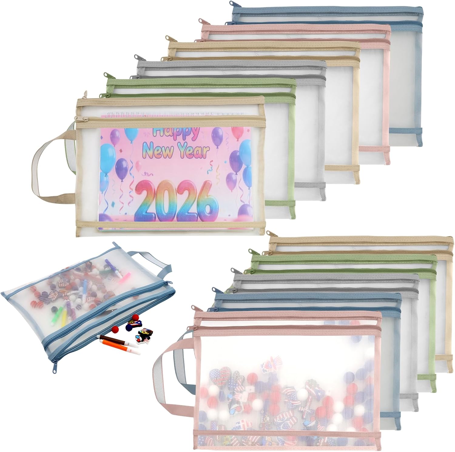 11 PCS Colored Mesh Zipper Pouch Bags, A4 Puzzle Building Blocks Toy Storage Bag with Handle Nylon Double-Layer Storage Mesh Bags for Book Stationery School Office Home Games