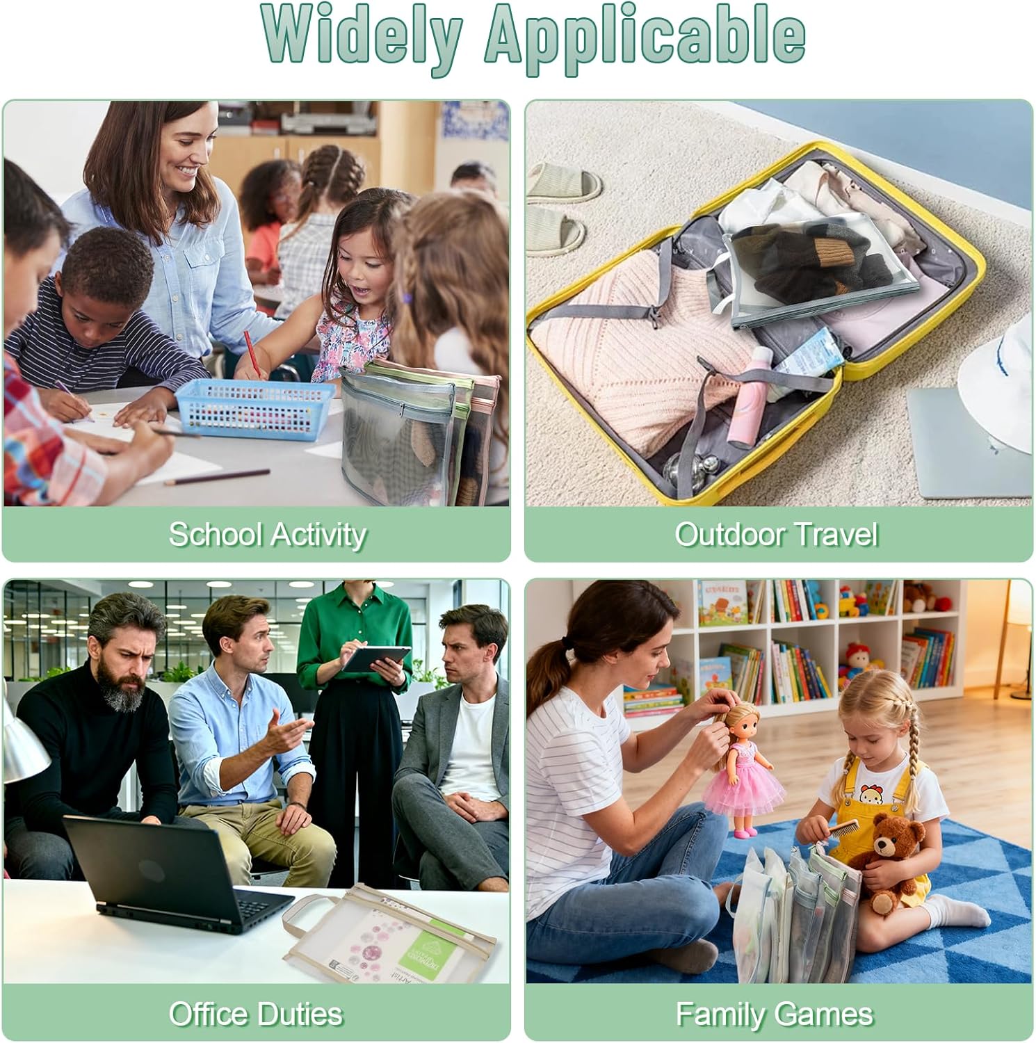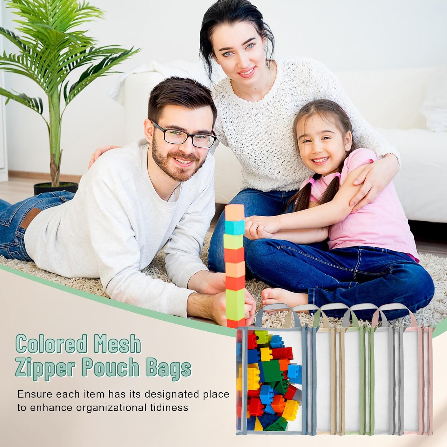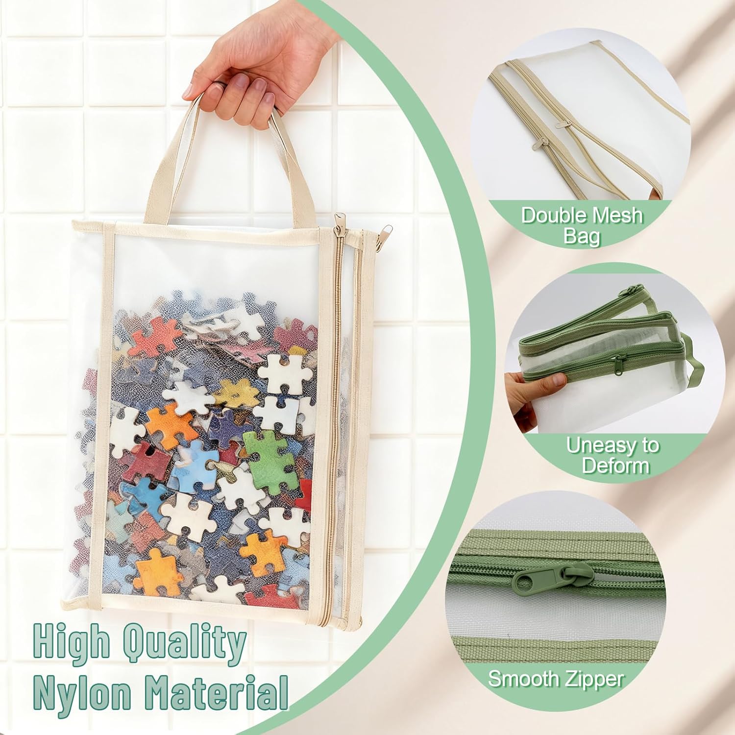 11 PCS Colored Mesh Zipper Pouch Bags, A4 Puzzle Building Blocks Toy Storage Bag with Handle Nylon Double-Layer Storage Mesh Bags for Book Stationery School Office Home Games