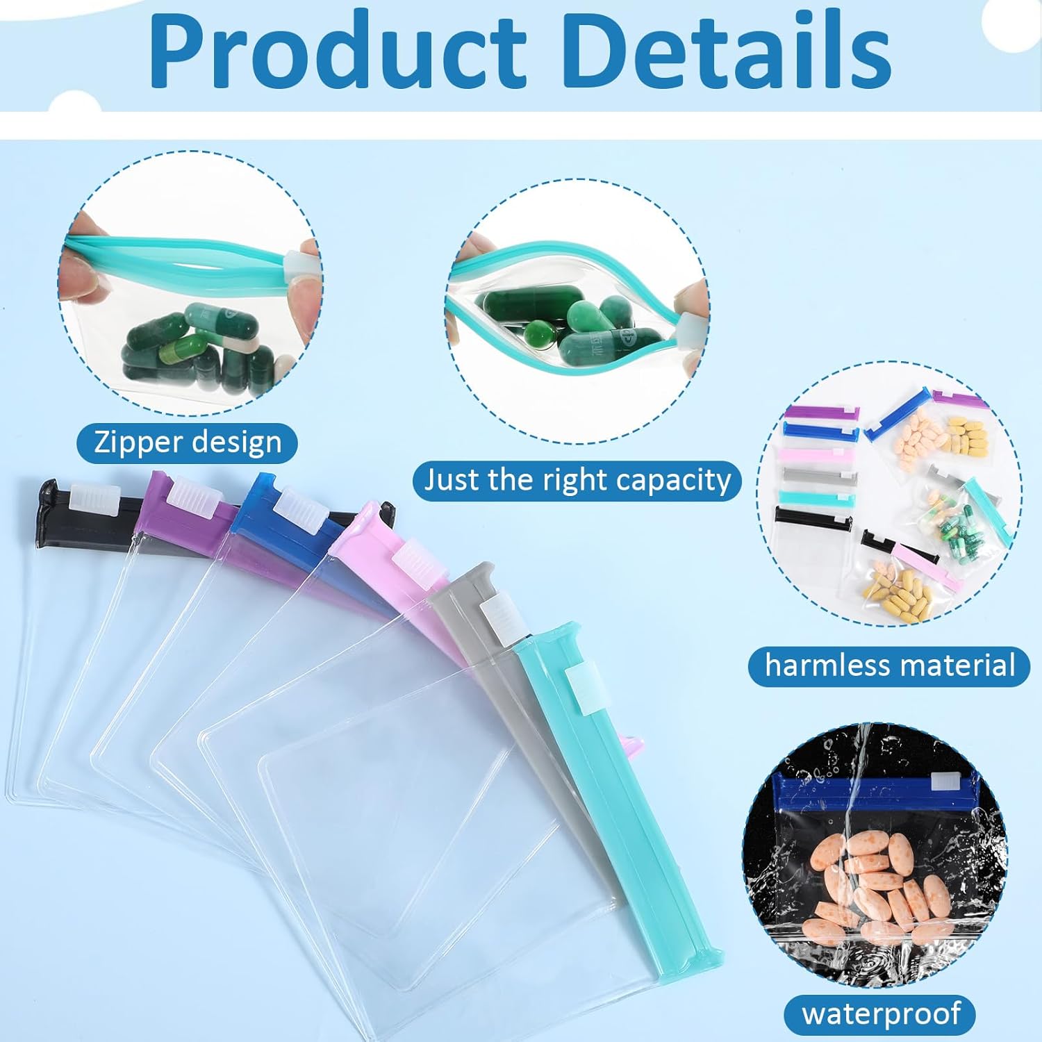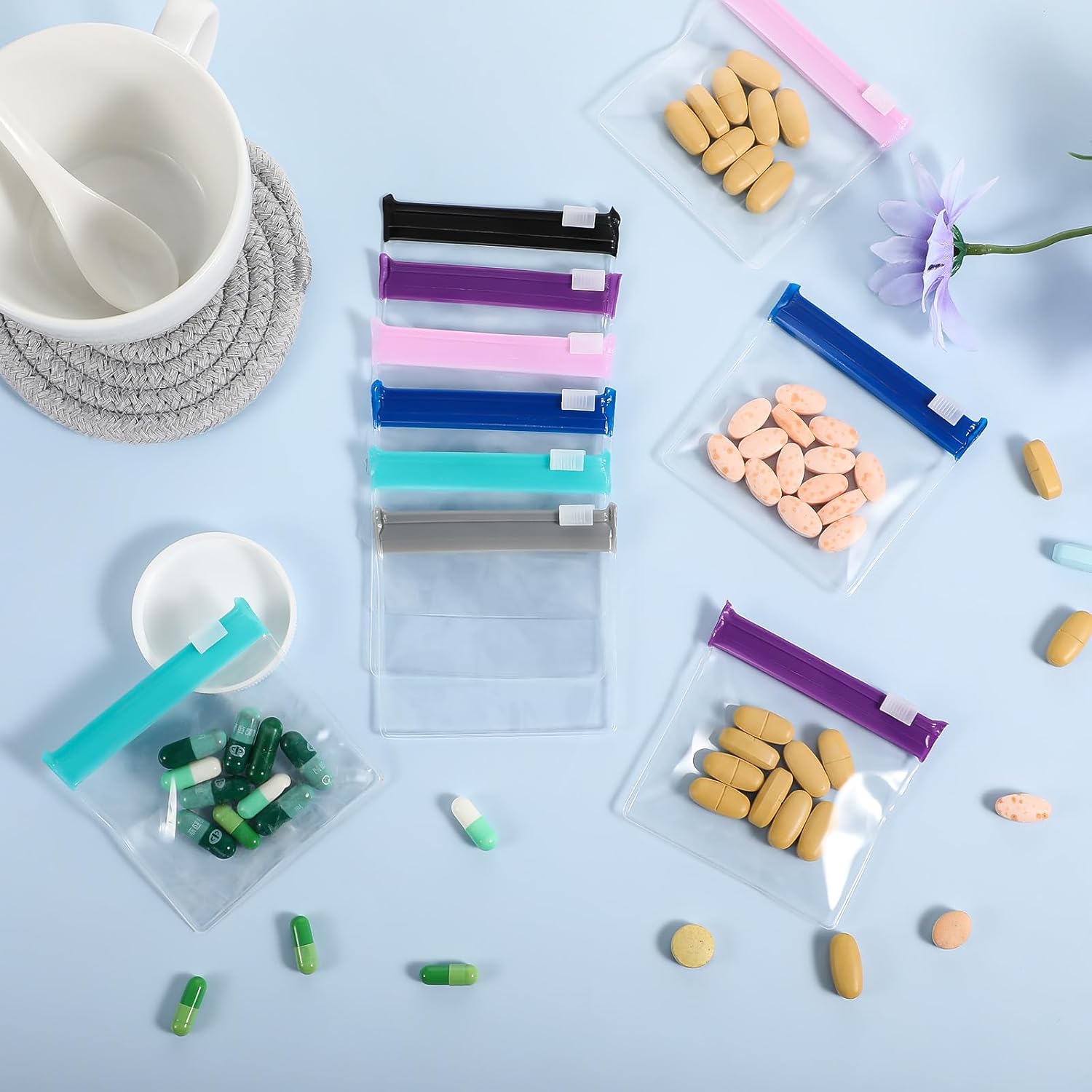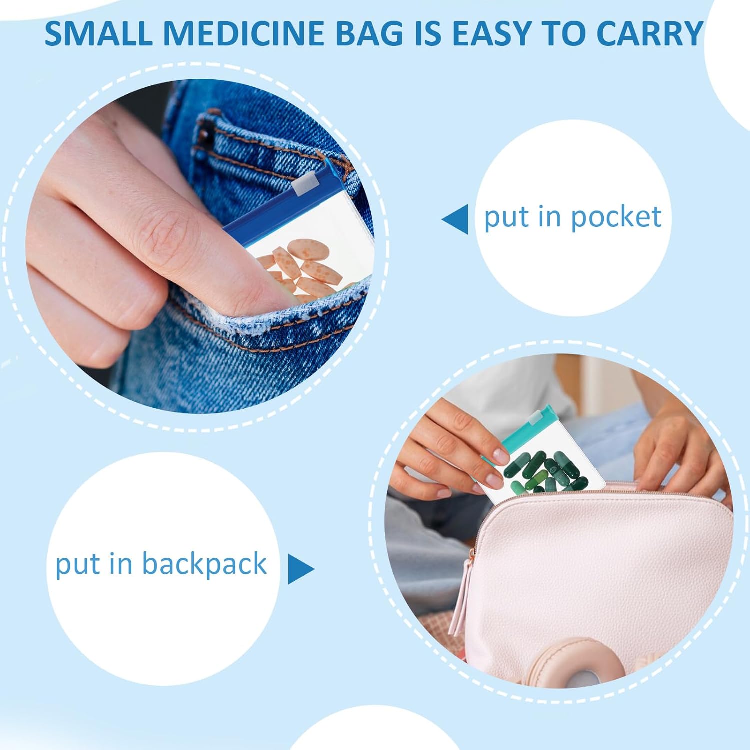Each bag measures 2.95 x 2.75 inches, making them compact and portable for travel. Use them to store not just pills, but also small accessories like earrings, bracelets, and coins.
