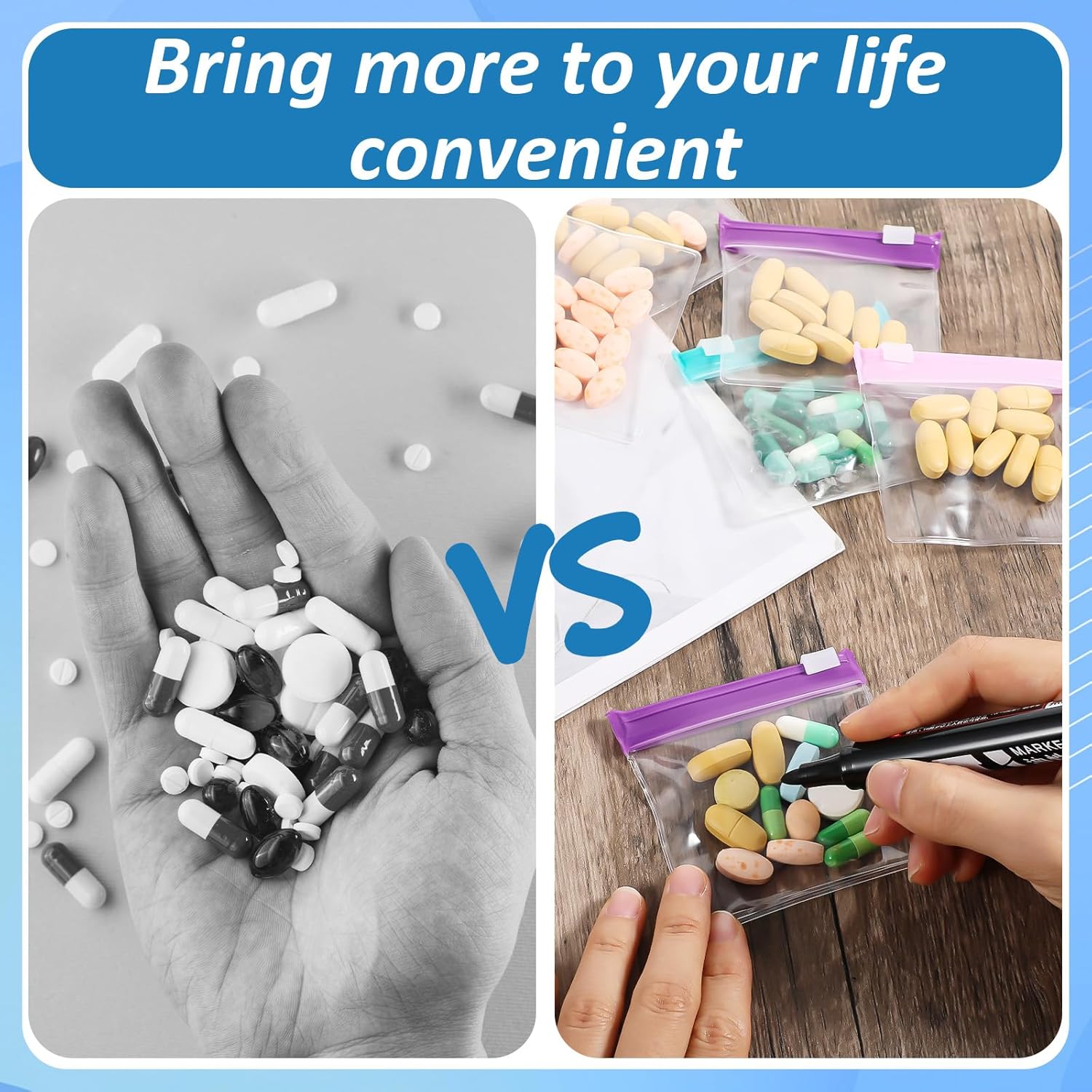 Keep your medications and small items organized with our 12PCS Medicine Bag set. These practical pouches feature a secure slide lock seal, making it easy to access your items while ensuring they stay safely inside. The translucent design allows you to quickly identify contents without opening each pouch.