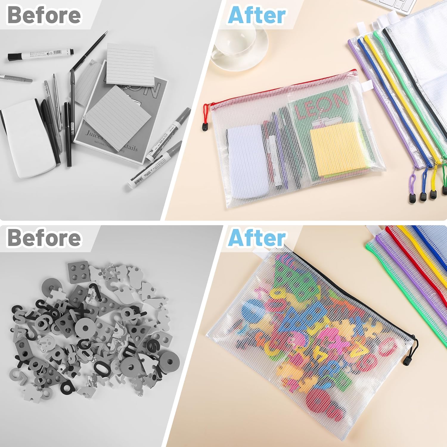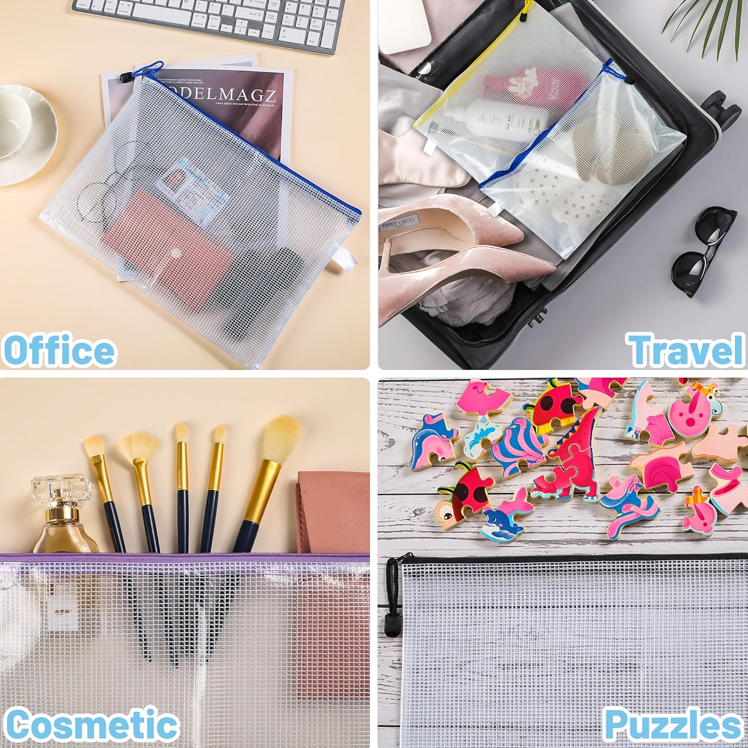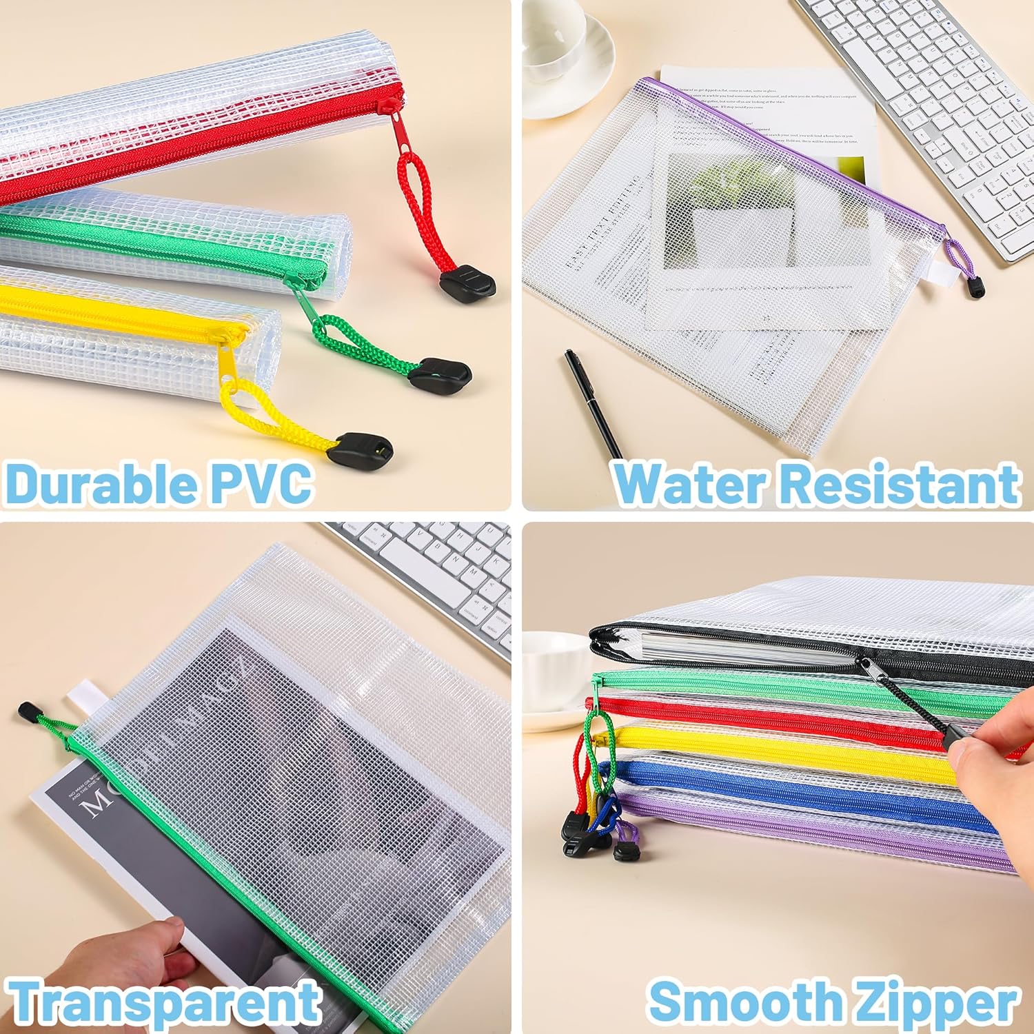 Our 12Pcs Plastic Wallets with Labels are designed for efficient organization in various settings, including home, office, and school. These transparent zip lock folders are perfect for storing A4 documents, ensuring that your important items remain safe and easily identifiable. The waterproof mesh material adds an extra layer of protection, while the clear design allows for quick visibility of contents.