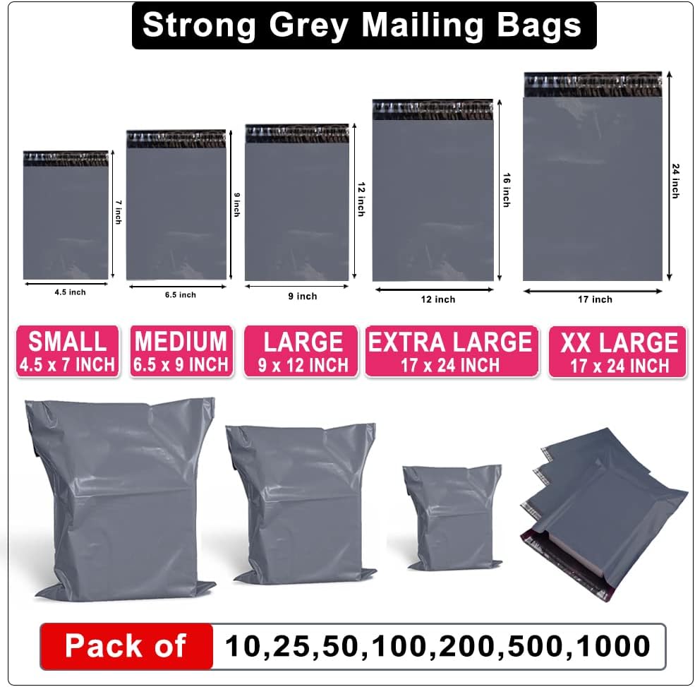 200 x Grey Mailing Bag Postage Bags Plastic Bags Large (9″ x 12″) with Waterproof Self Seal Mailing Bags #L1024-200