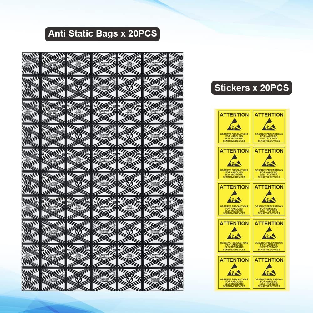 20pcs Large Anti Static Bags with Antistatic Sticker, 30cm x 40cm Open Top ESD Shielding Anti-static Bag for Motherboard Electronics Components