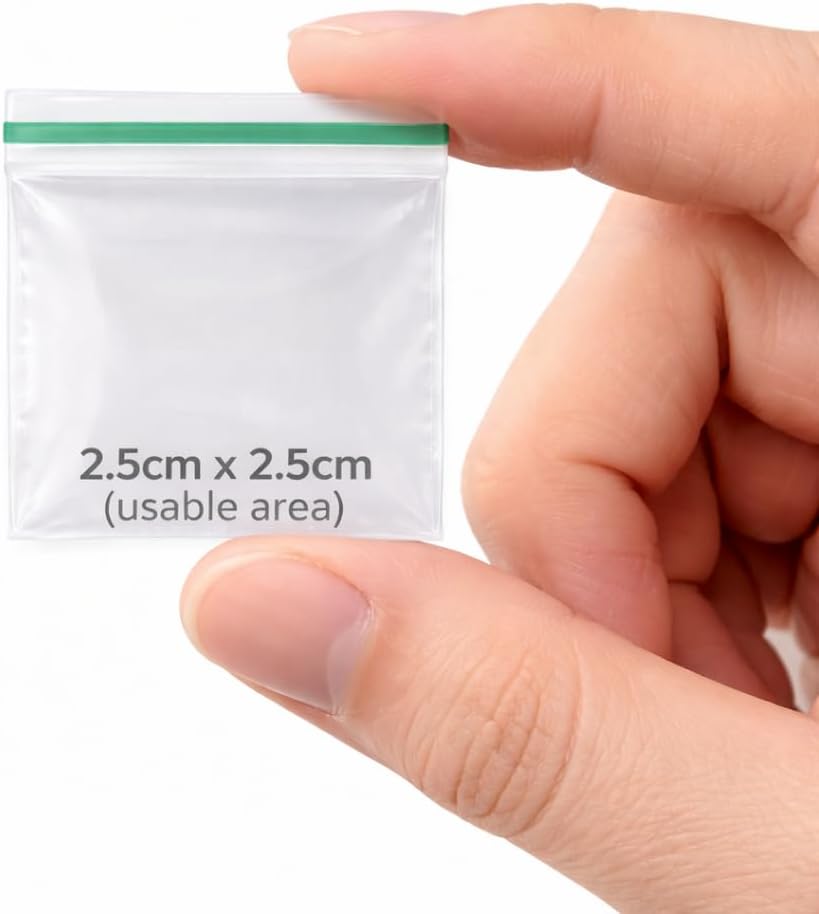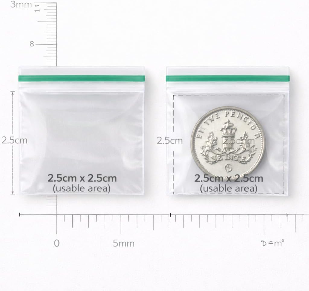 25mm x 25mm – Mini Grip Seal Bags (100 Pack) – 45 Micron – Ideal for Jewellery, Beads, Diamonds, Tiny Parts Storage – Resealable Clear Poly Bags