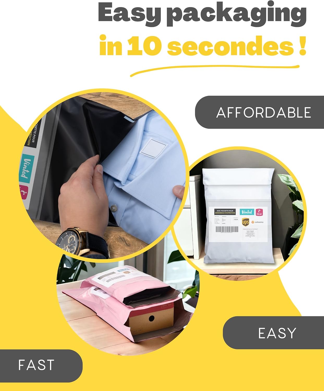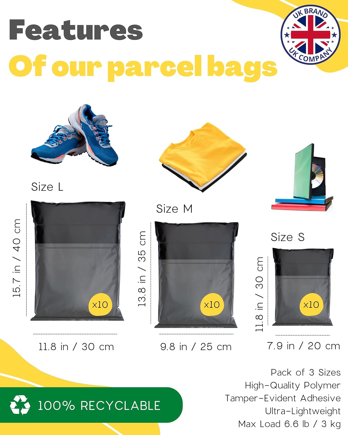 Introducing our 30 Postage Bags for Clothes, available in three sizes: S, M, and L. Designed by Emballax, a UK-based company, these bags are perfect for online sellers and Vinted users. Made from waterproof and tear-proof plastic, they ensure that your items remain protected during transit. The self-seal feature makes packaging quick and easy, allowing you to focus on your business. With a stylish design, these bags also help create a positive impression on your customers.