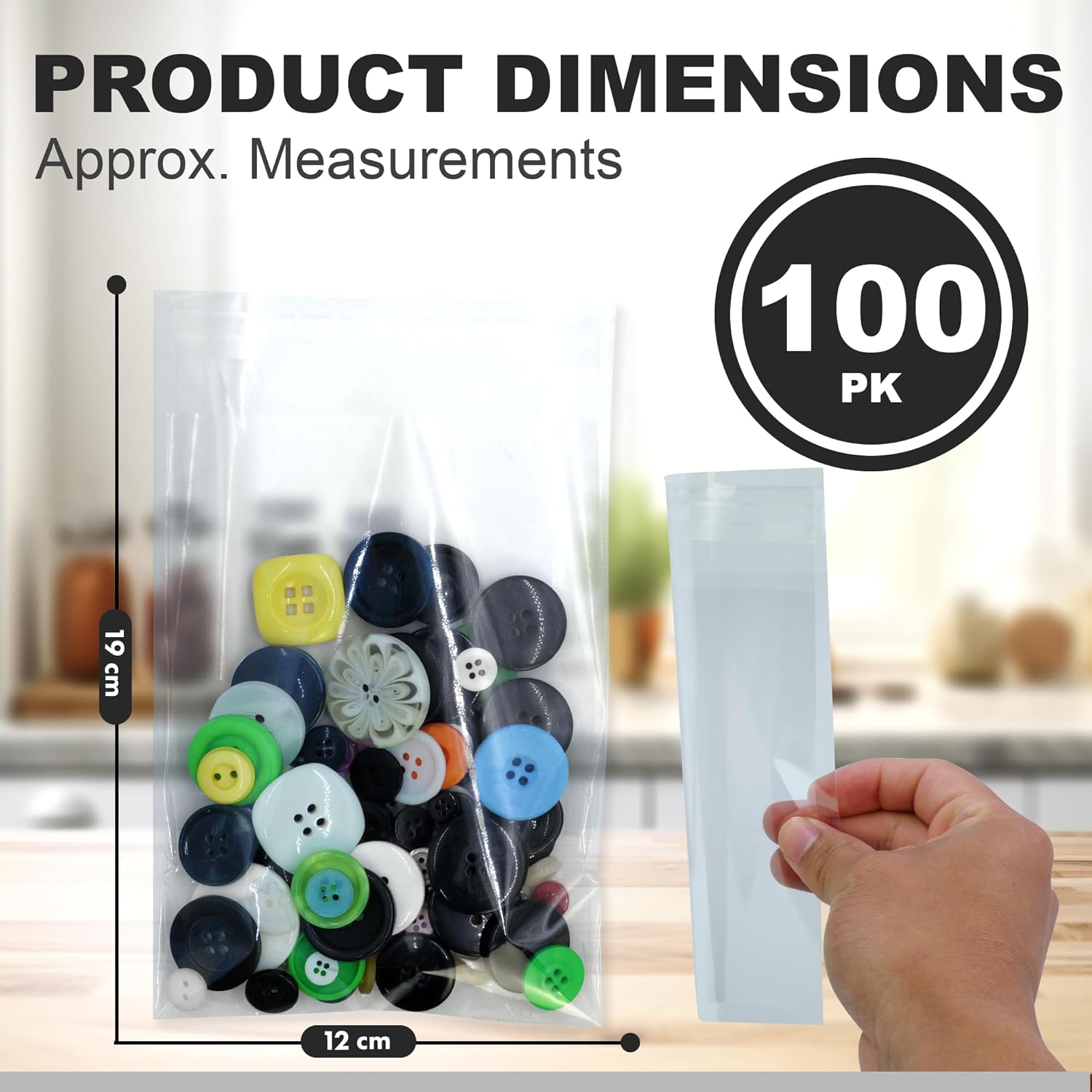 The cellophane bags measure approximately 19cm x 12cm x 1mm (7.4" x 4.7" x 1mm).