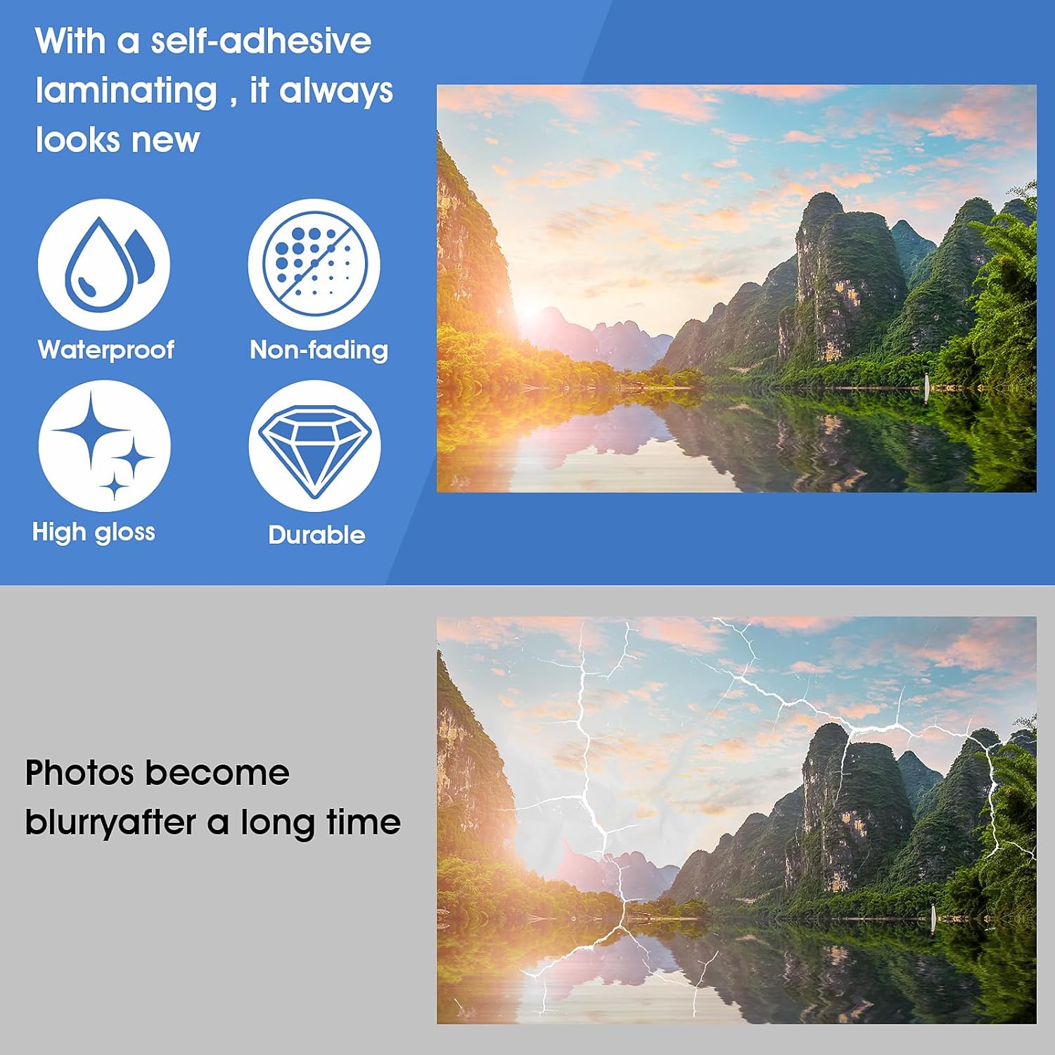 50 Pack Self Sealing Laminating Sheets 4×6 No Machine Self Adhesive Clear Laminate Sheet No Heat Transparent Gloss Finish Waterproof Laminator Sheets for Business Card Photo Stickers