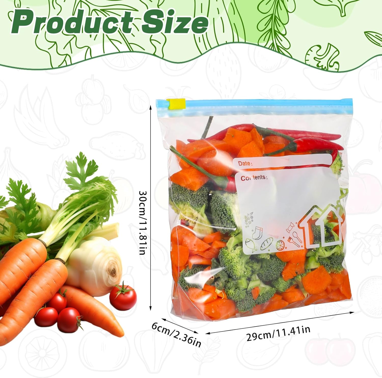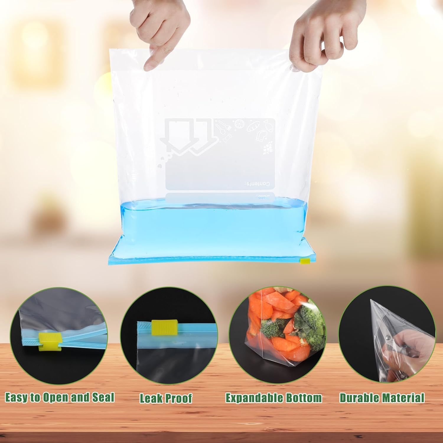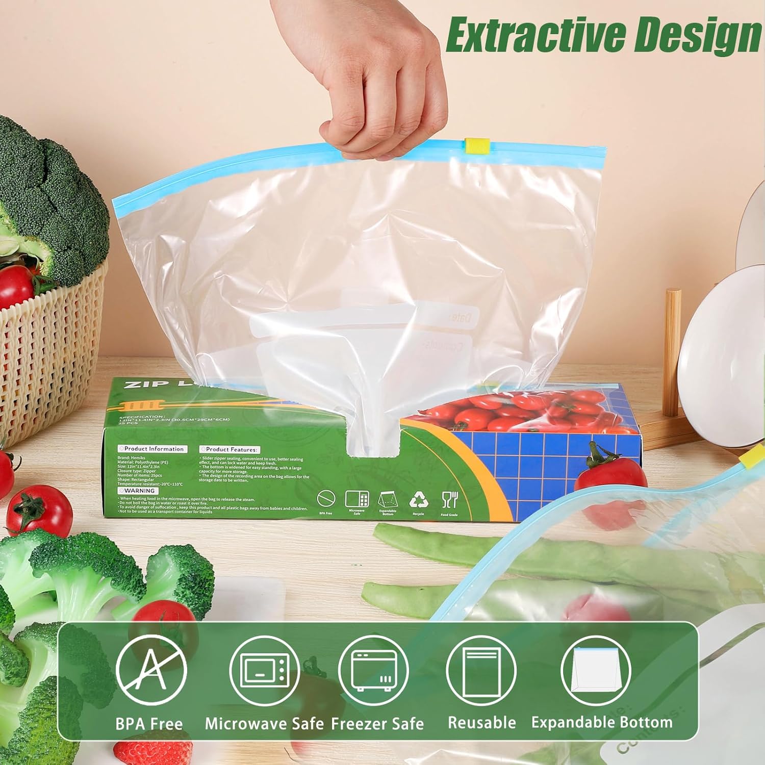 50 Pcs Food Storage Freezer Bags, Reusable Zip Lock Bags (4.55L) Large Ziplock Bag Heavy Duty Food Bags with Expandable Bottom, Zip Seal Freezer Bag for Fruits, Veggies, Meat, Snacks