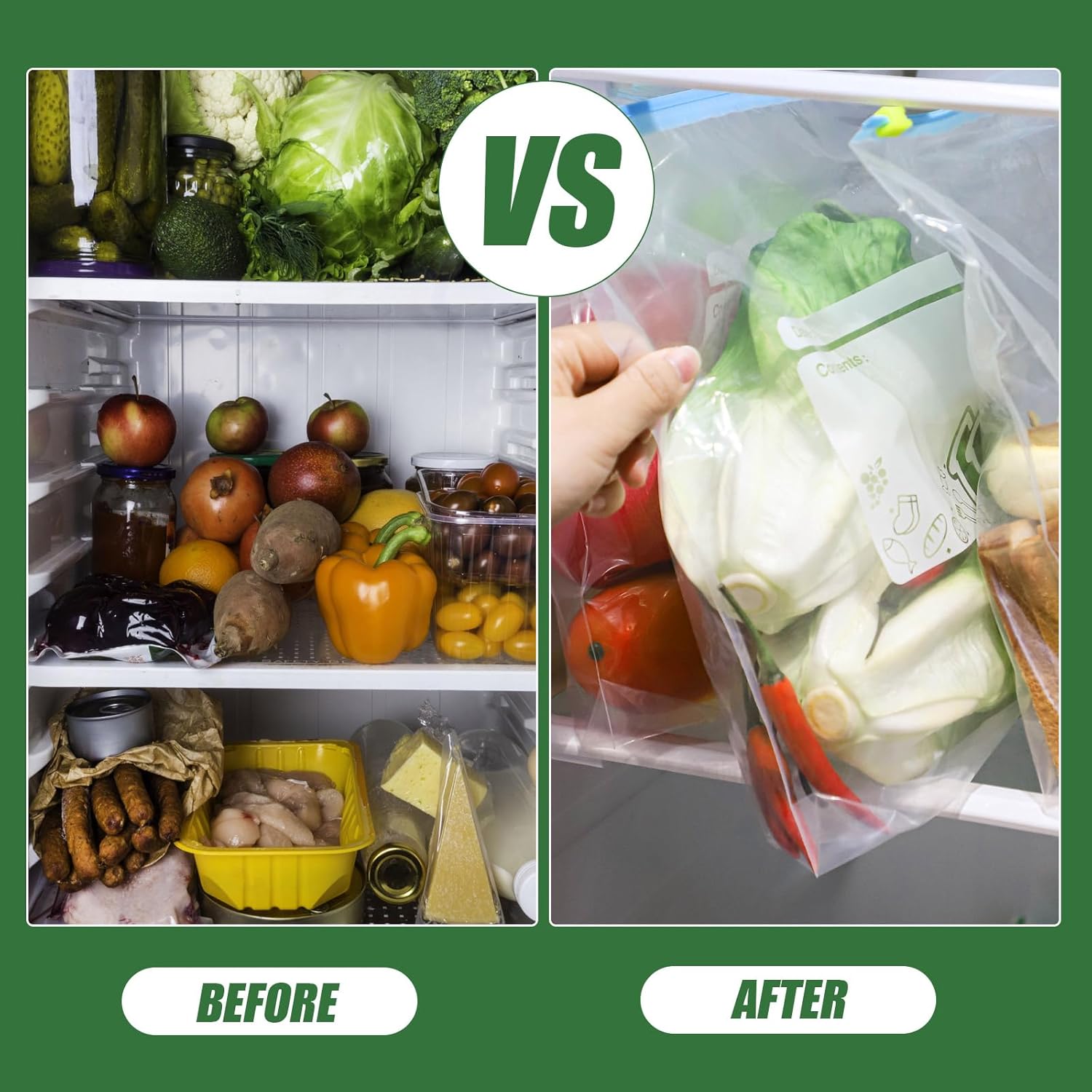 These bags are suitable for storing fruits, vegetables, meat, and snacks.
