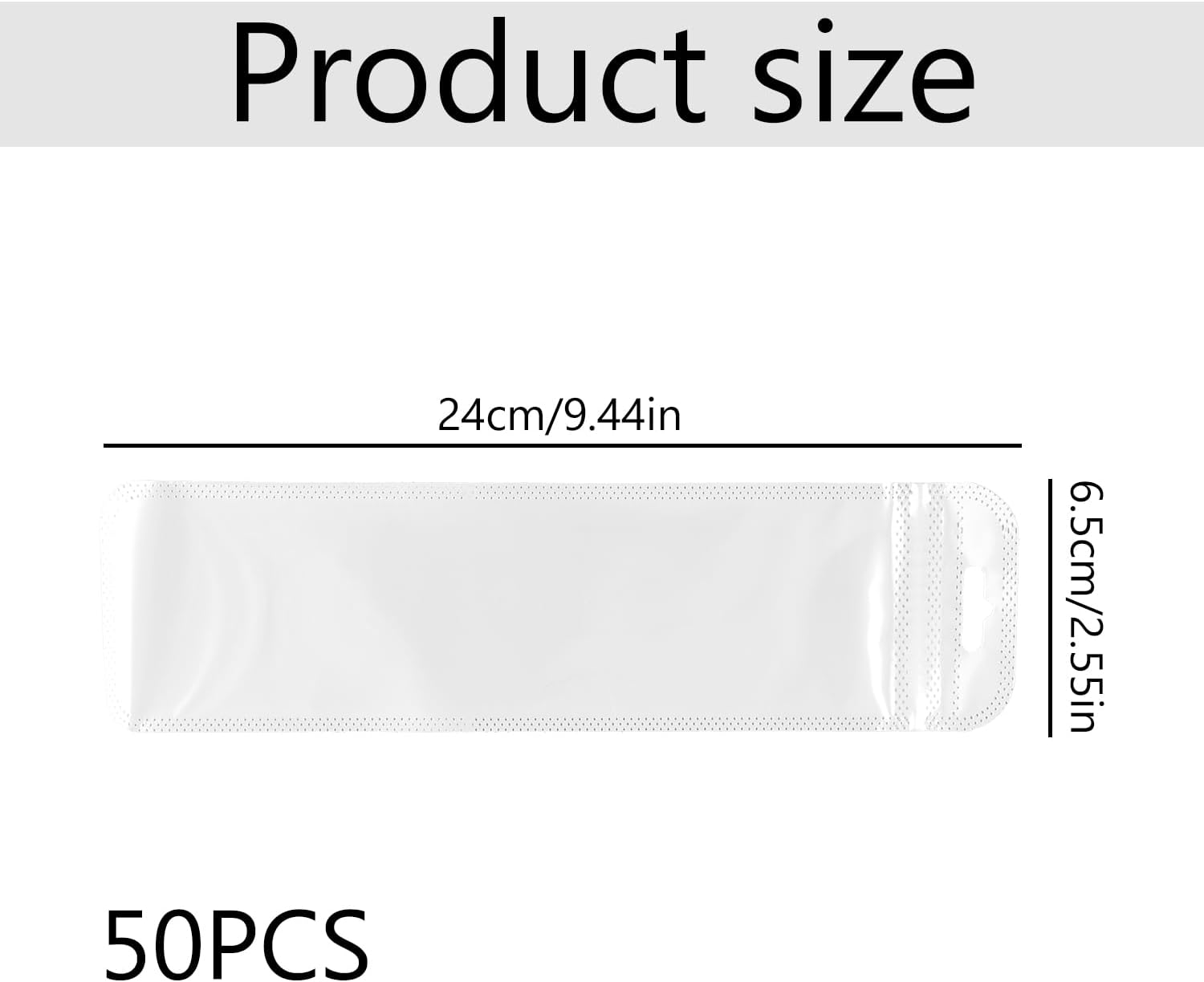 The 50 Pcs Transparent Pen Packaging Bags are designed for versatility and convenience. Measuring 9.44 x 2.55 inches, these resealable zipper pouches are perfect for storing a variety of small items. Whether you're organizing stationery, packaging gifts, or displaying merchandise, these bags provide a practical solution. Their lightweight design makes them easy to carry, ideal for both daily use and travel.