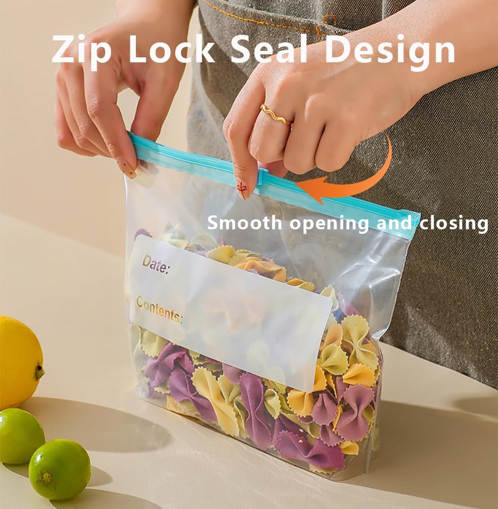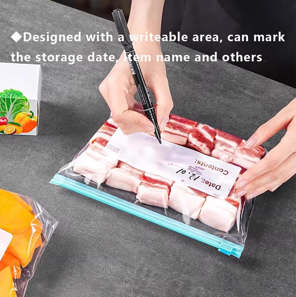 These 50 Pcs Zip Lock Food Storage Freezer Bags are designed for versatility and convenience in your kitchen. Made from BPA-free materials, they are safe for storing a variety of foods, including fruits, vegetables, meat, and snacks. The reusable design helps reduce waste, making them an eco-friendly choice. The expandable bottom allows for easy filling and organisation.