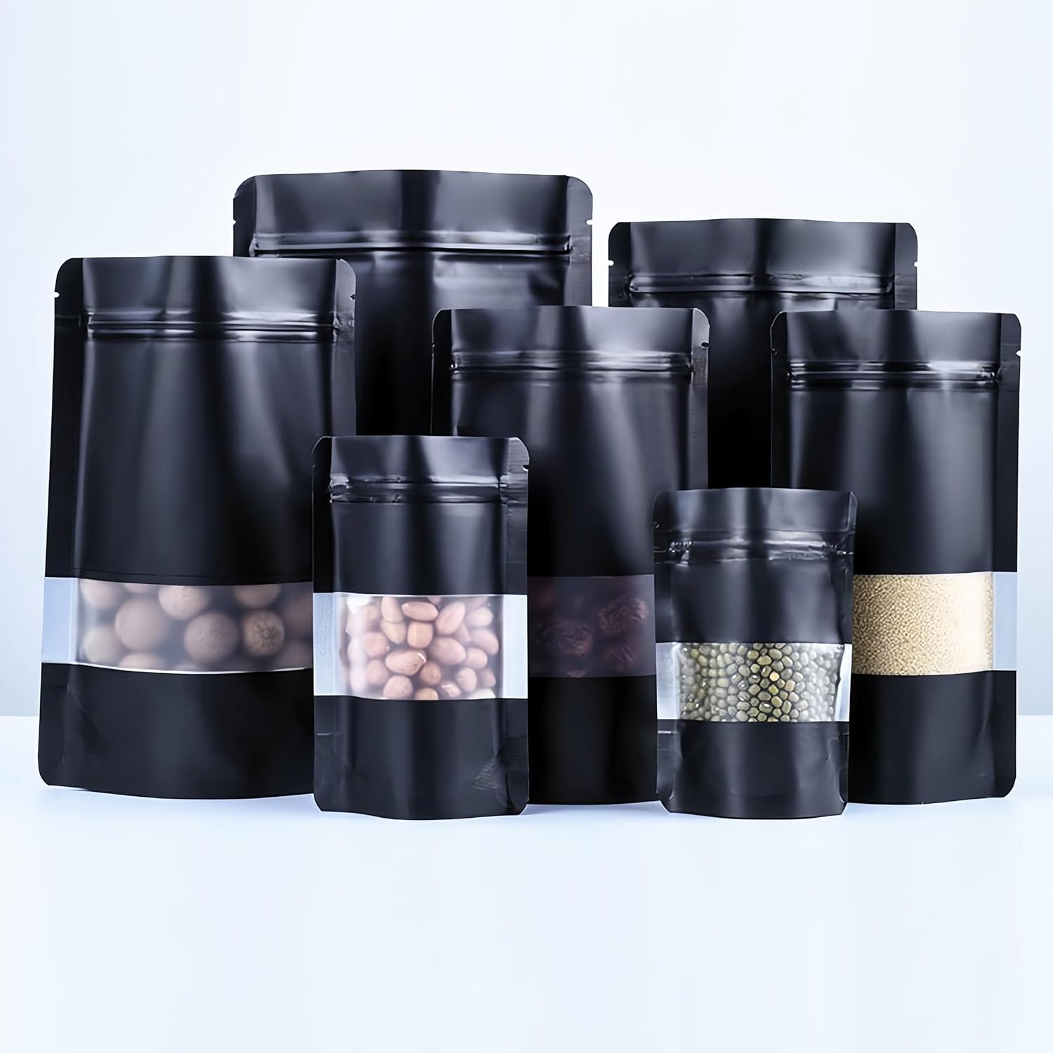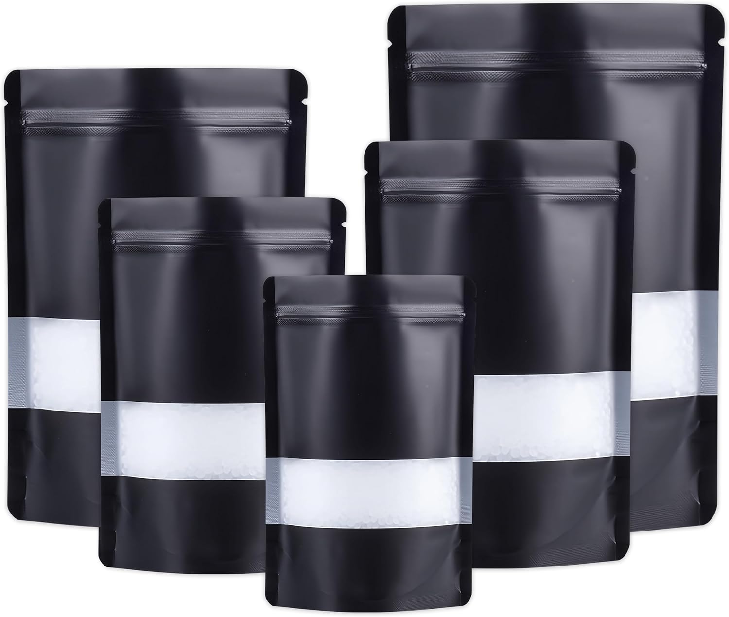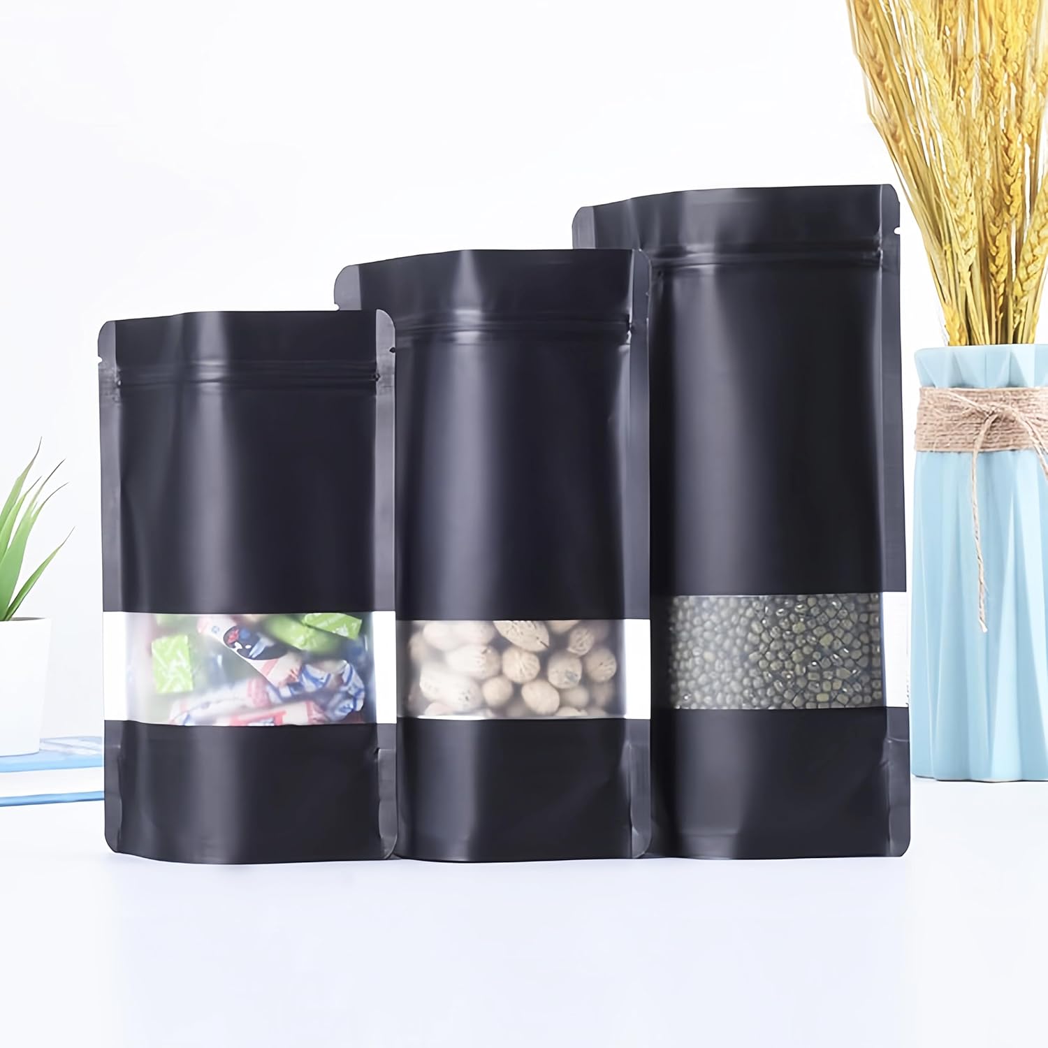 50pcs Mylar Bags With Window,Black Mylar Bags Stand Up,Smell Proof Bag Aluminum Foil Pouches,Reusable Heat Seal Baggies Packaging Bag for Food Storage (16x24cm – 50 pcs, Black)