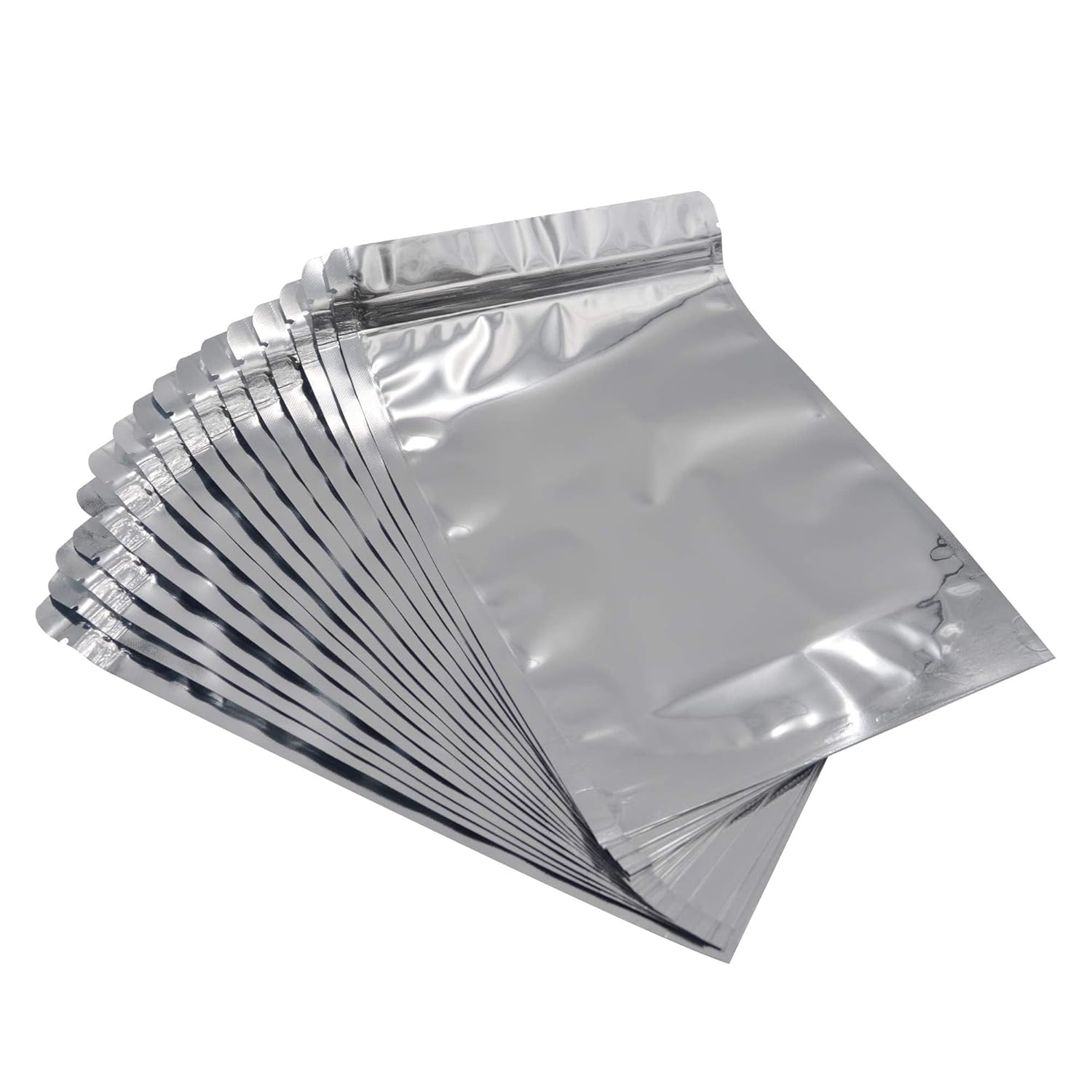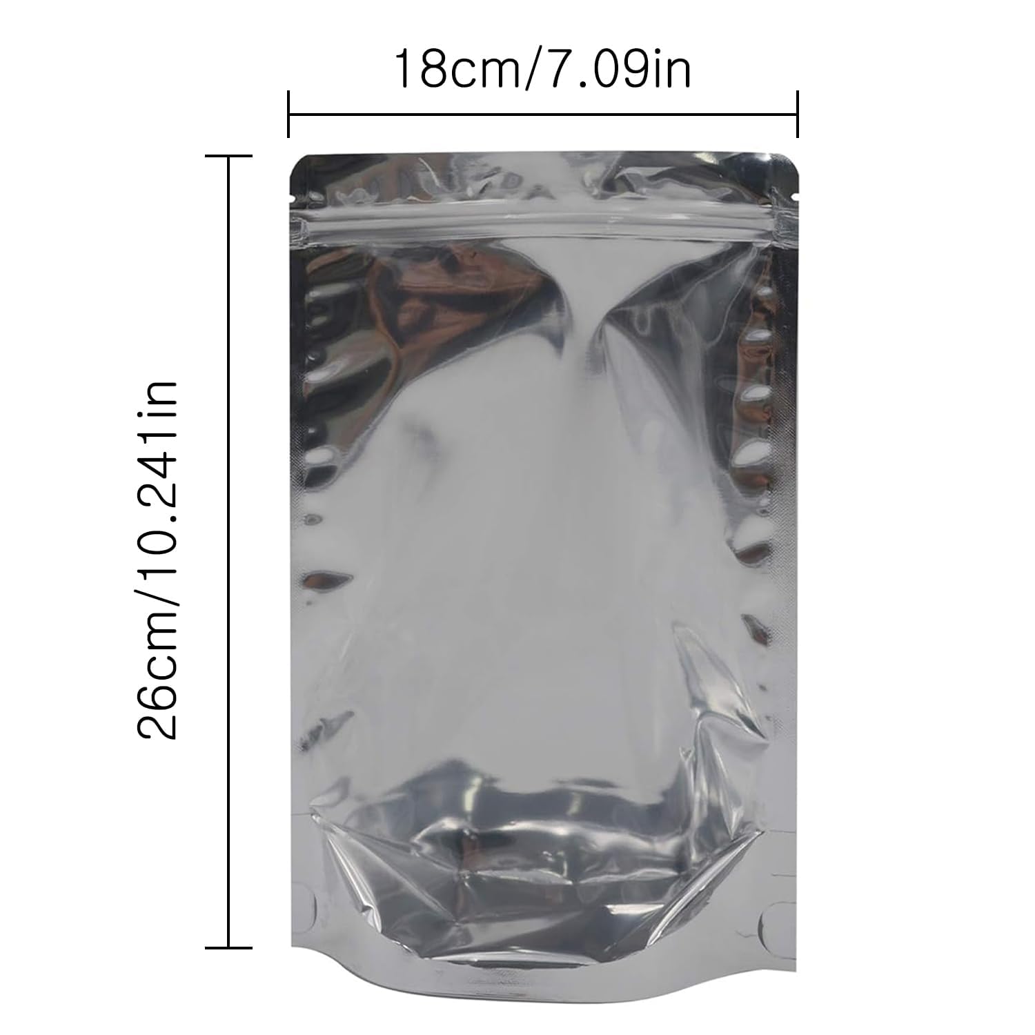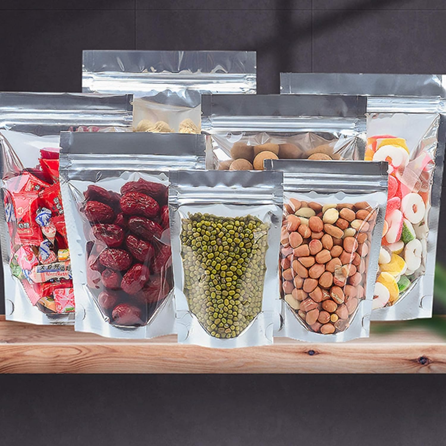 50Pcs Resealable Ziplock Mylar Food Storage Bags Foil Aluminium Stand Up Pouches Bags with Clear Front for Candy, Cookies, Jewelry, Herbs, Snack, Coffee Bean, Kitchen, Dessert Party (18x26cm)