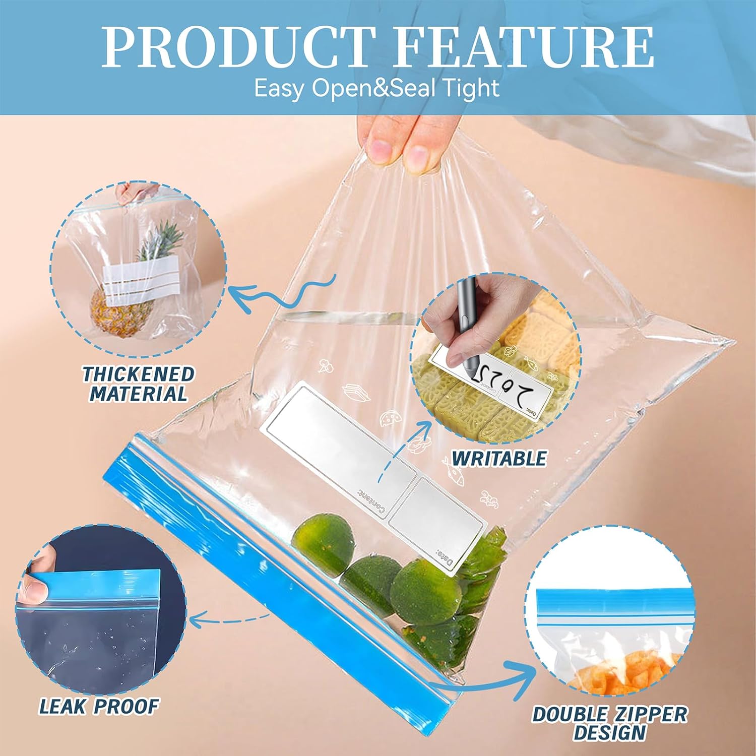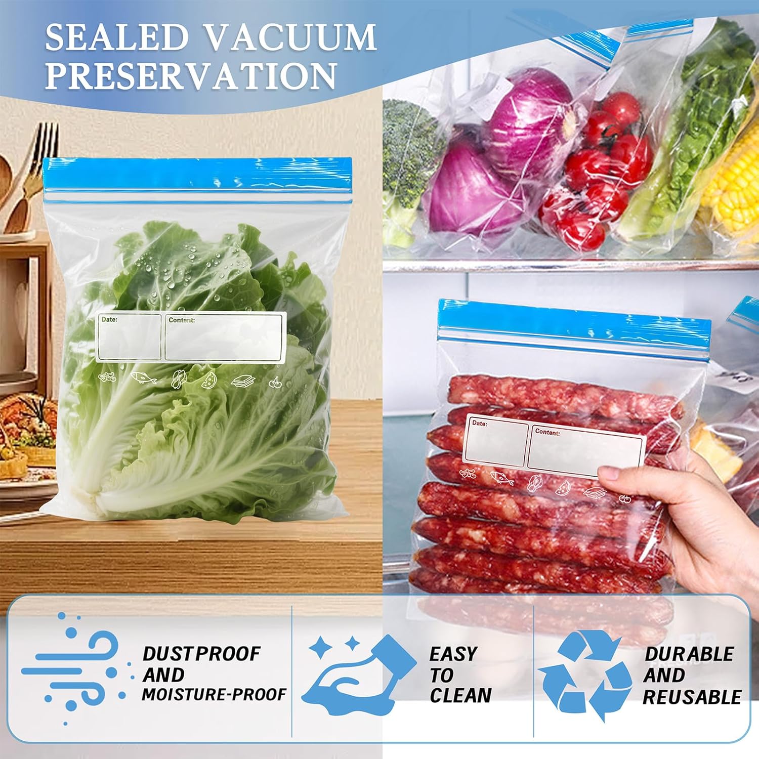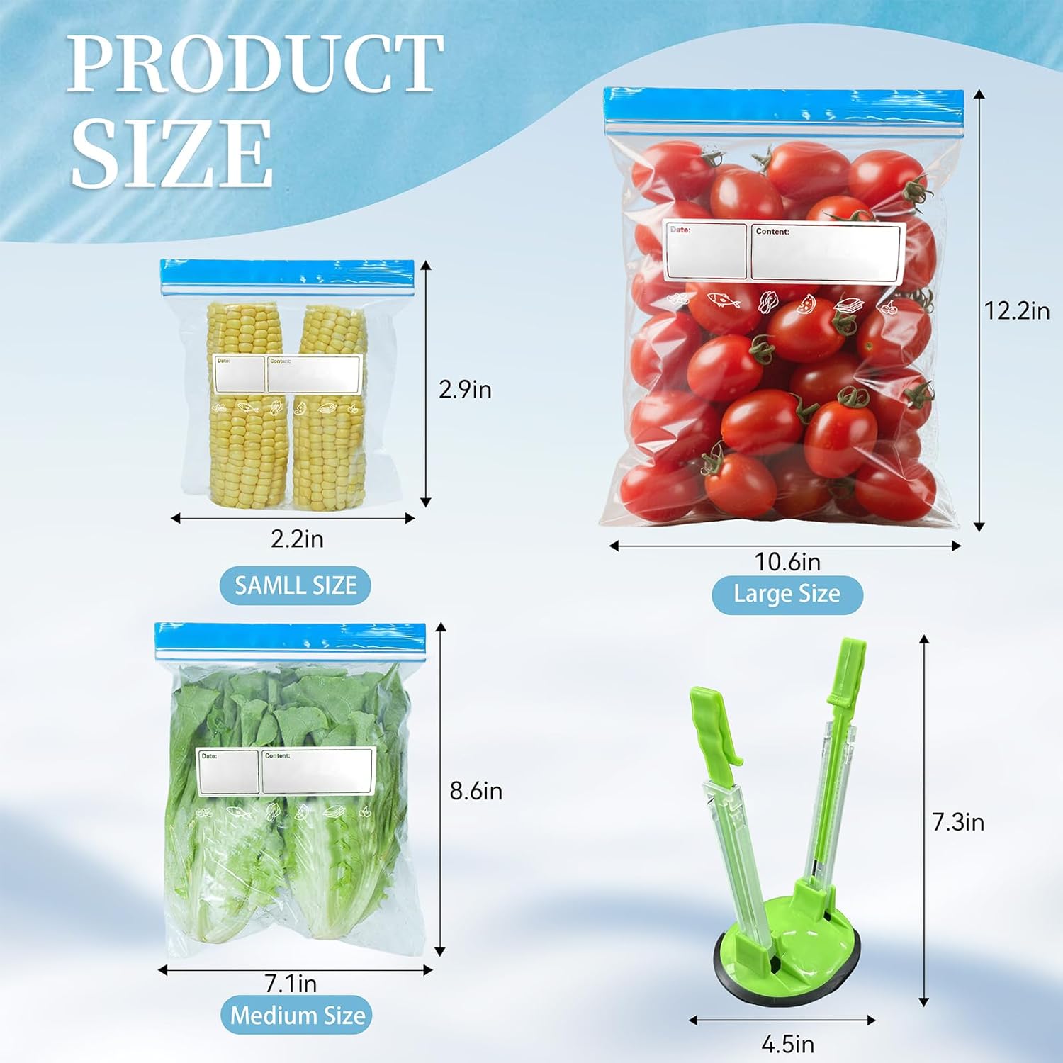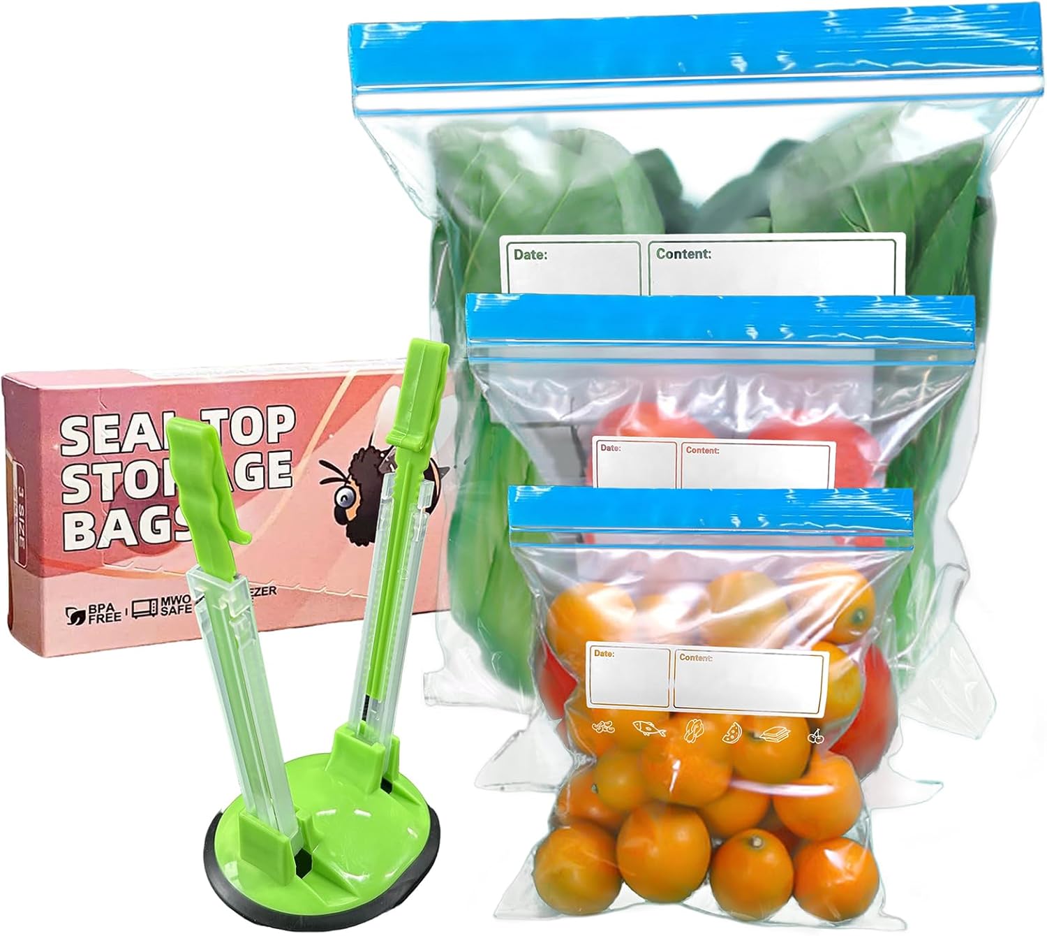 70 Pcs Freezer Bags Food Storage Zip Lock Bag 3 Sizes (Large,Medium,Small) of Reusable Self Ziplock Bags with Sandwich Bag Stand Holder BPA Free Food Bag for Fruits Vegetables Meat Grains