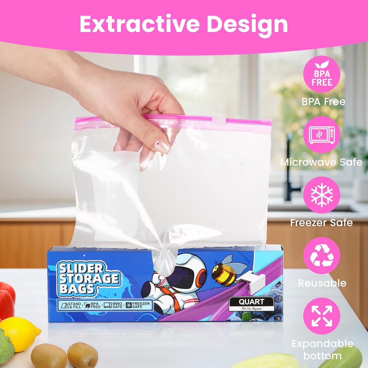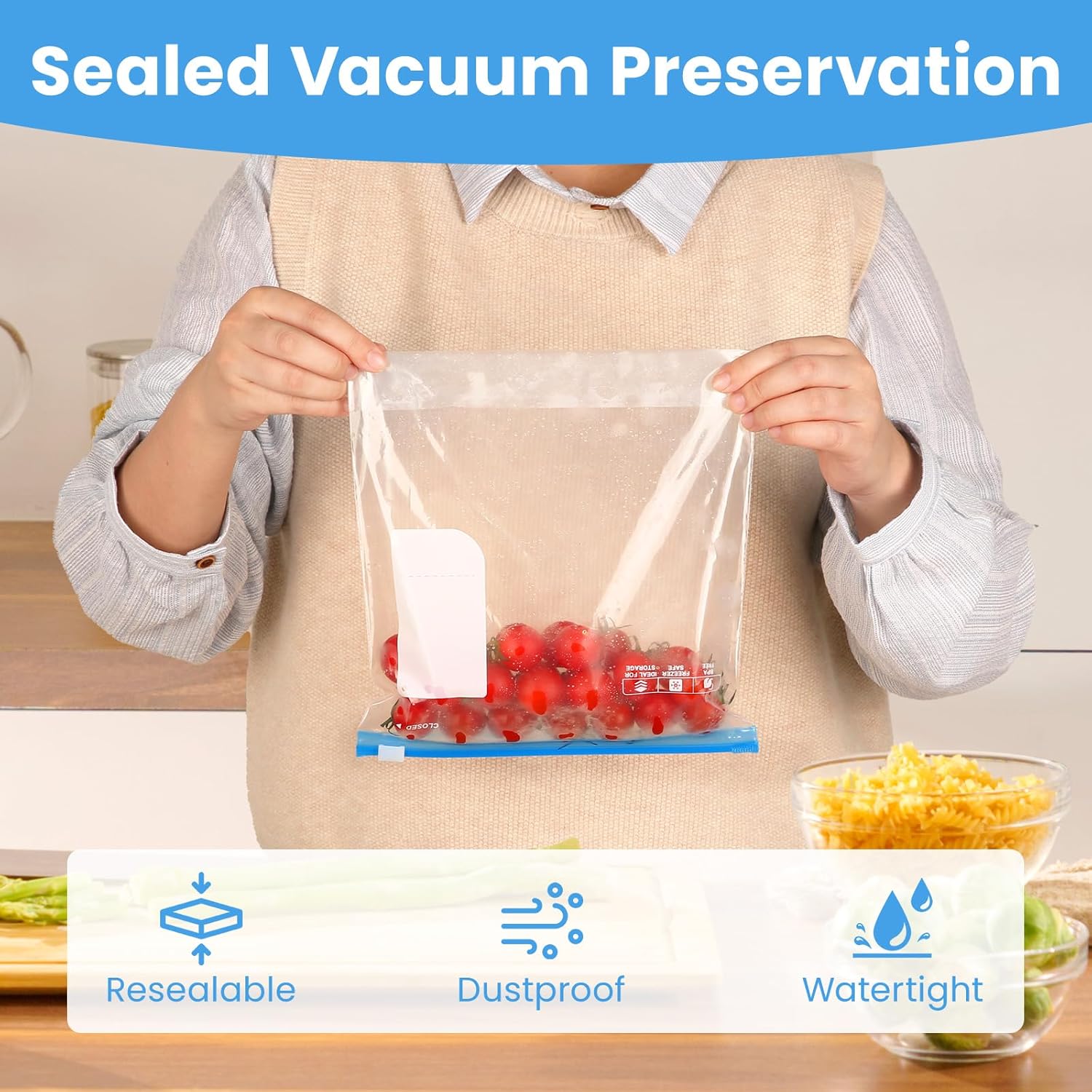 • Easy to seal with a slider for secure storage.