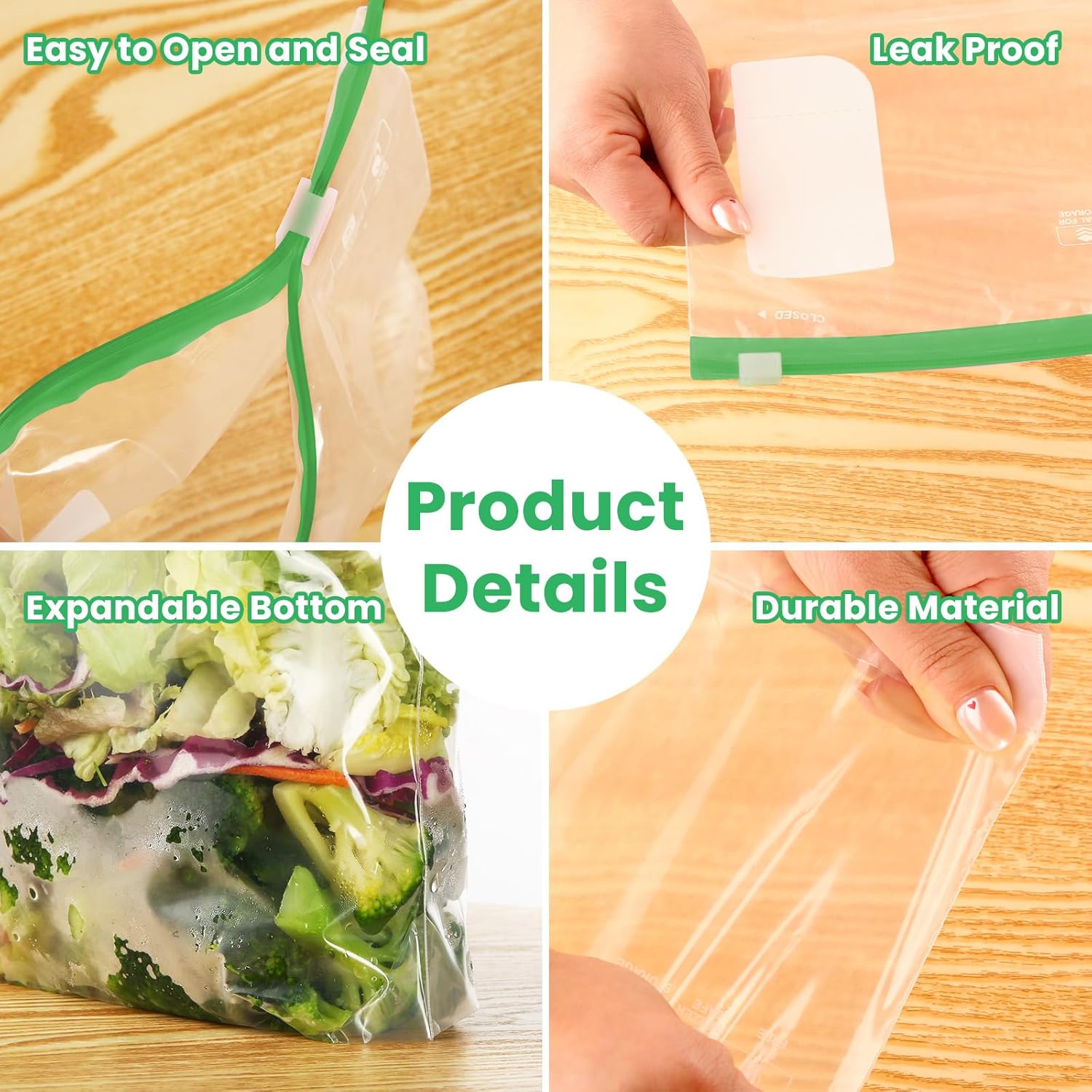These 75 Pcs Zip Lock Bags are perfect for storing a variety of foods, including fruits, vegetables, grains, and meats. Made from BPA-free PE material, they are designed to withstand temperatures from -20°C to 110°C, making them suitable for freezing and microwave thawing. The transparent design allows you to easily see the contents, and the expandable bottom provides extra space for larger items.