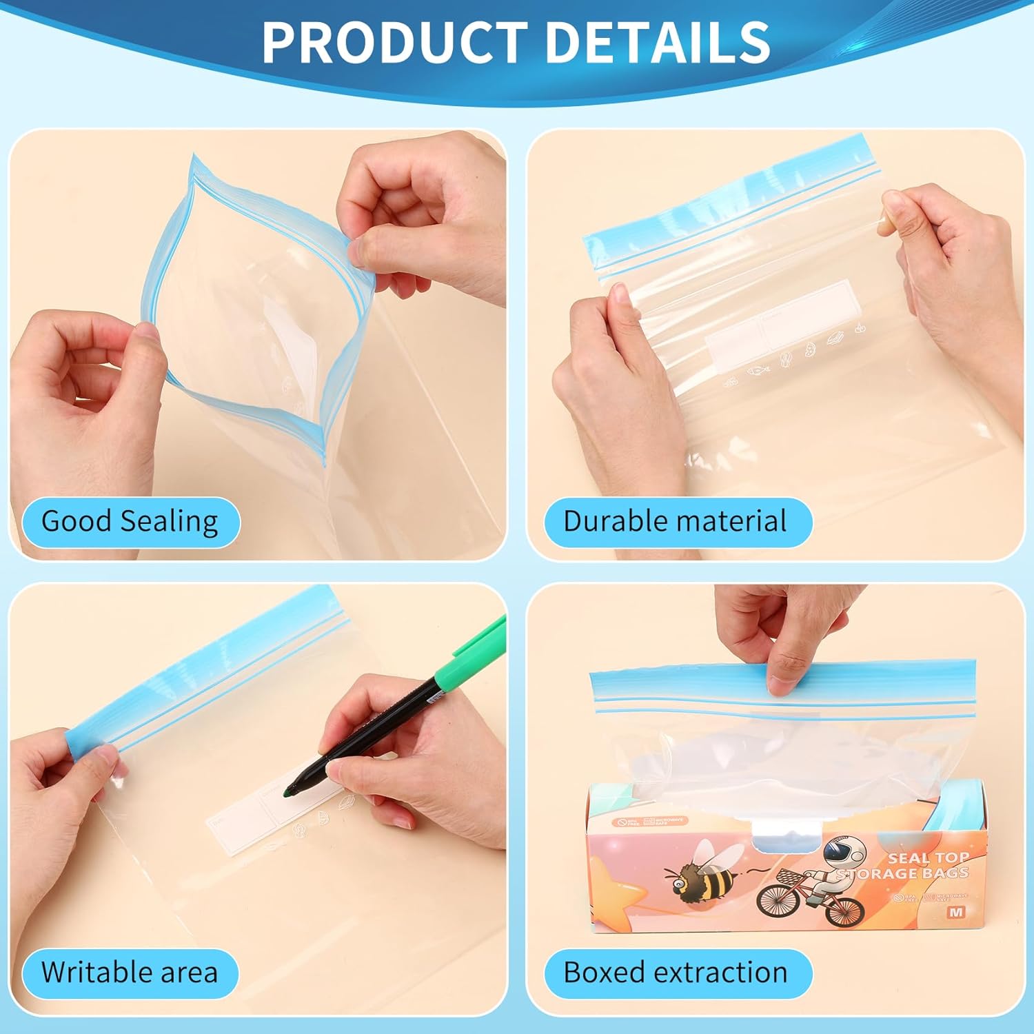 75 Pieces Reusable Freezer Bags, Food Storage Seal Zip Lock Sandwich Bags for Meat, Fruits, Vegetables, Grains, Sandwich, Nuts (75 Pack-Medium)