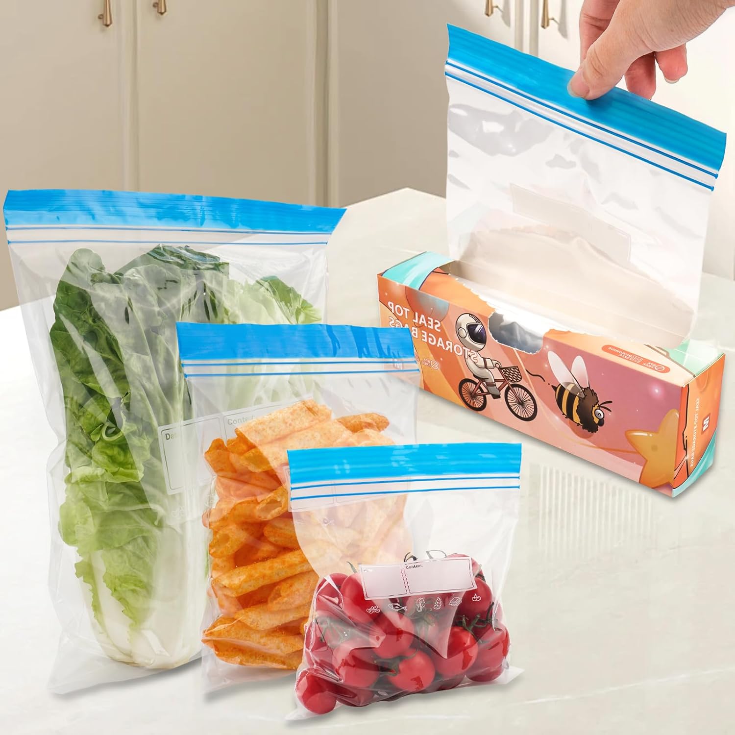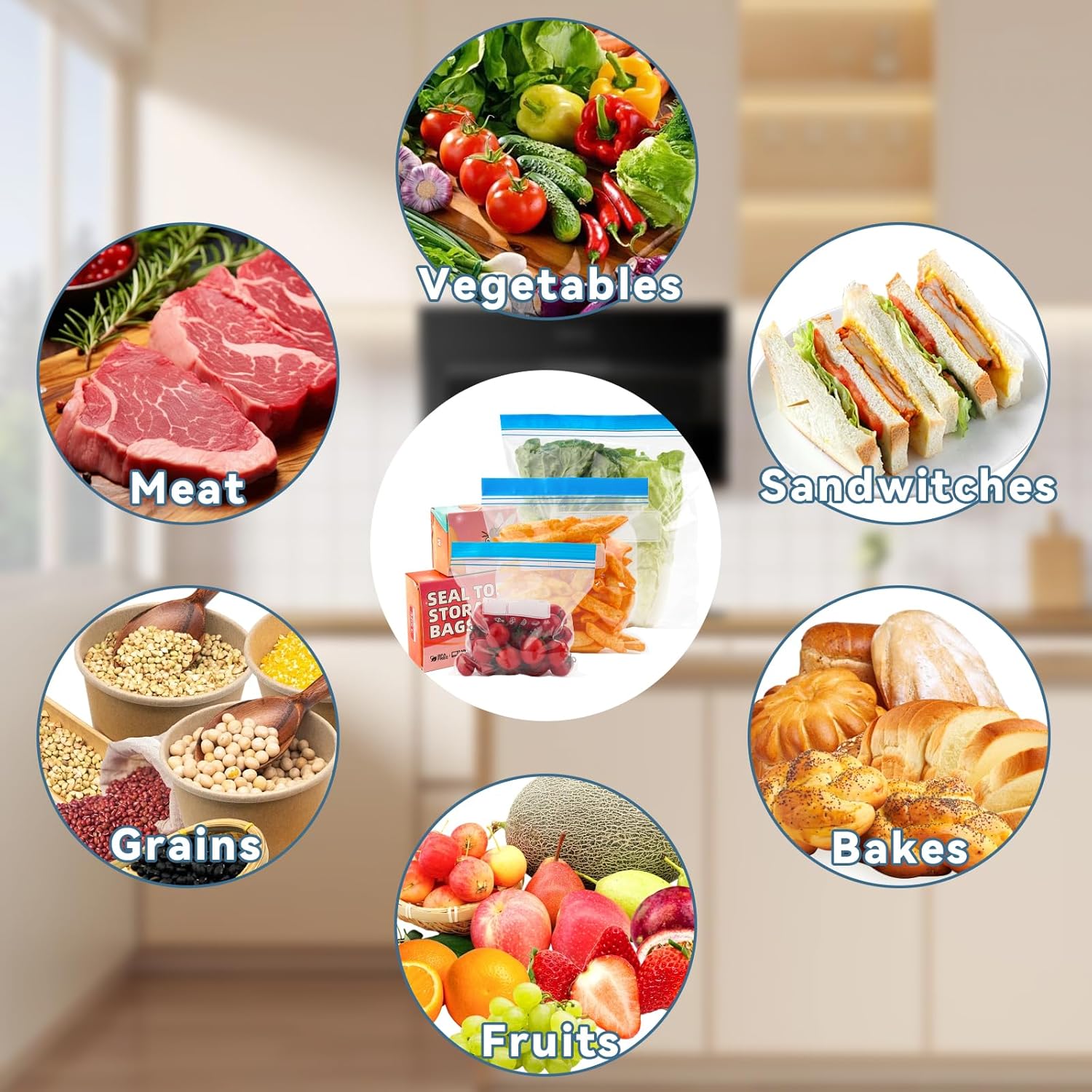 95 Pack Food Storage Freezer Bags, Reusable Sandwich Bags,3 Sizes Seal Food Bags,BPA Free,Leakproof,for Meat,Vegetables,Fruits,Meal Prep(31x27cm,18x22cm,15.5×17.5cm)