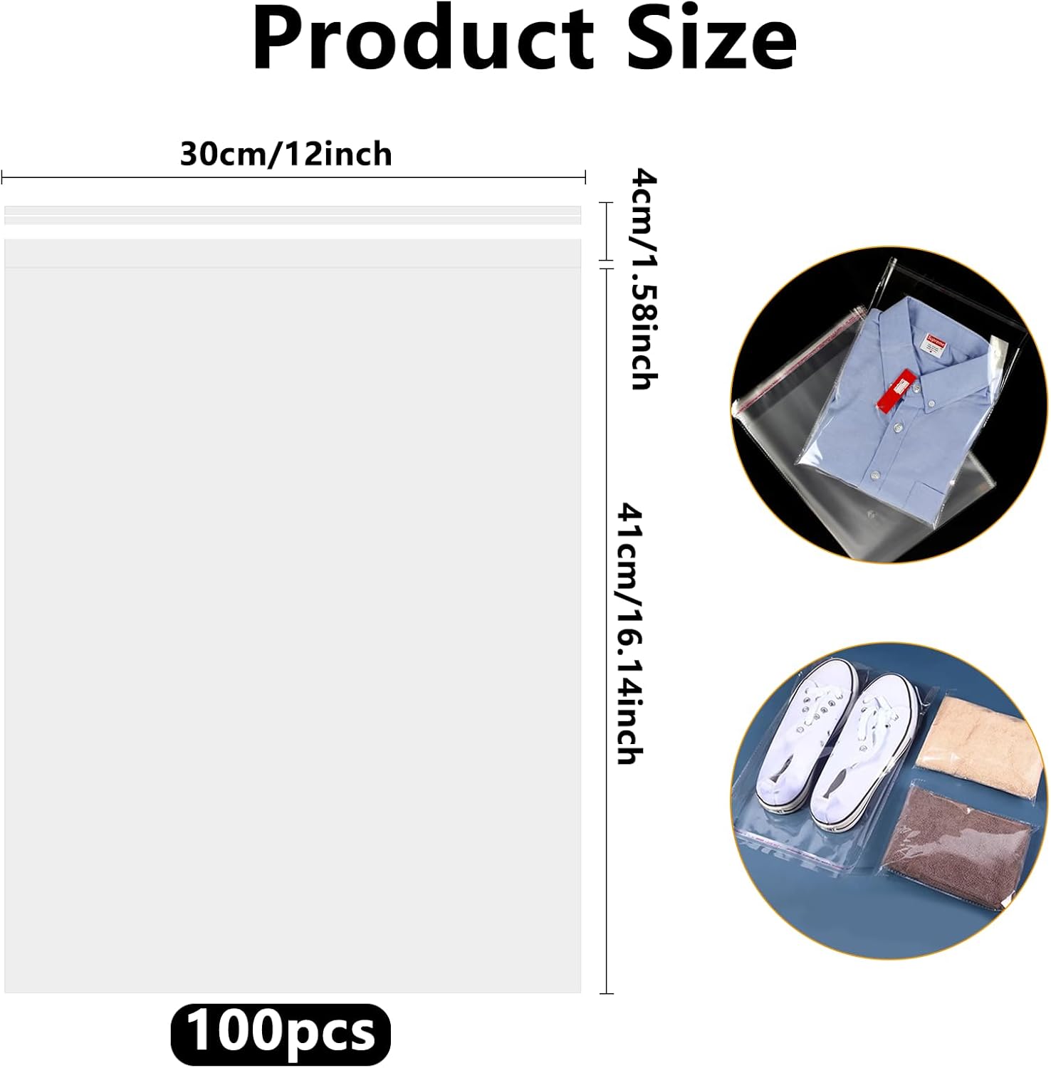 A3 Cellophane Bags Pack of 100, 12 x 17 Inch Clear Cellophane Sweet Cookie Bags, Food Safe, Seal Clear Self-Adhesive OPP Display Sealable Bags for Cookies, Sweets, Envelopes, Gifts, Cards, Pictures