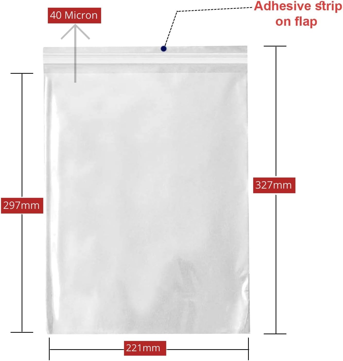 A4 Cello bags – Pack of 100-40 Microns – 30mm A4 cellophane bags self seal – Crystal clear & good thickness – artwork/photos/Cards display/Craft – A4 envelopes peel and seal
