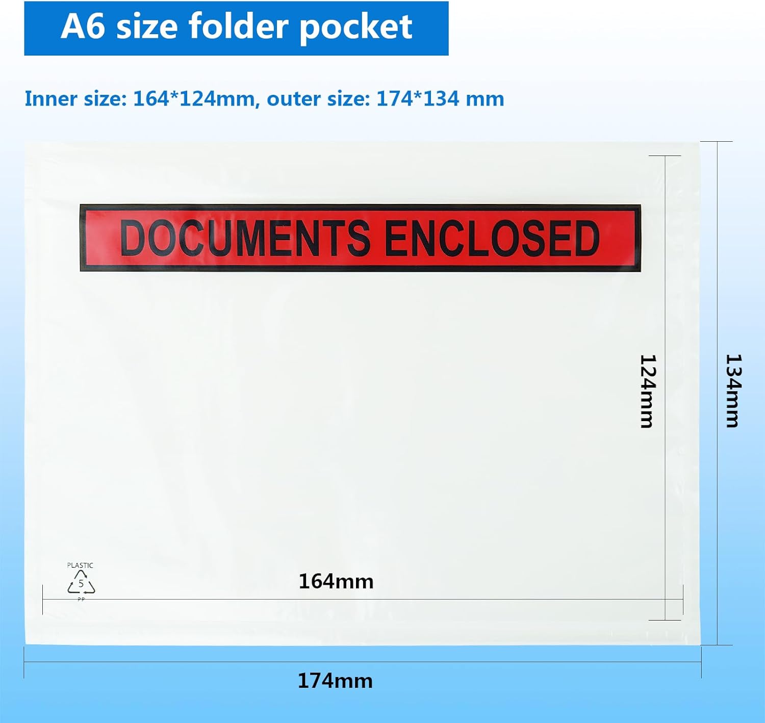 A6 Document Enclosed Wallets 164 x 124 mm Peel and Seal Envelopes for Invoices, Packing Lists or Notes, Self Seal Packaging Packing Shipping Postage Pouches Bags (Pack of 100)