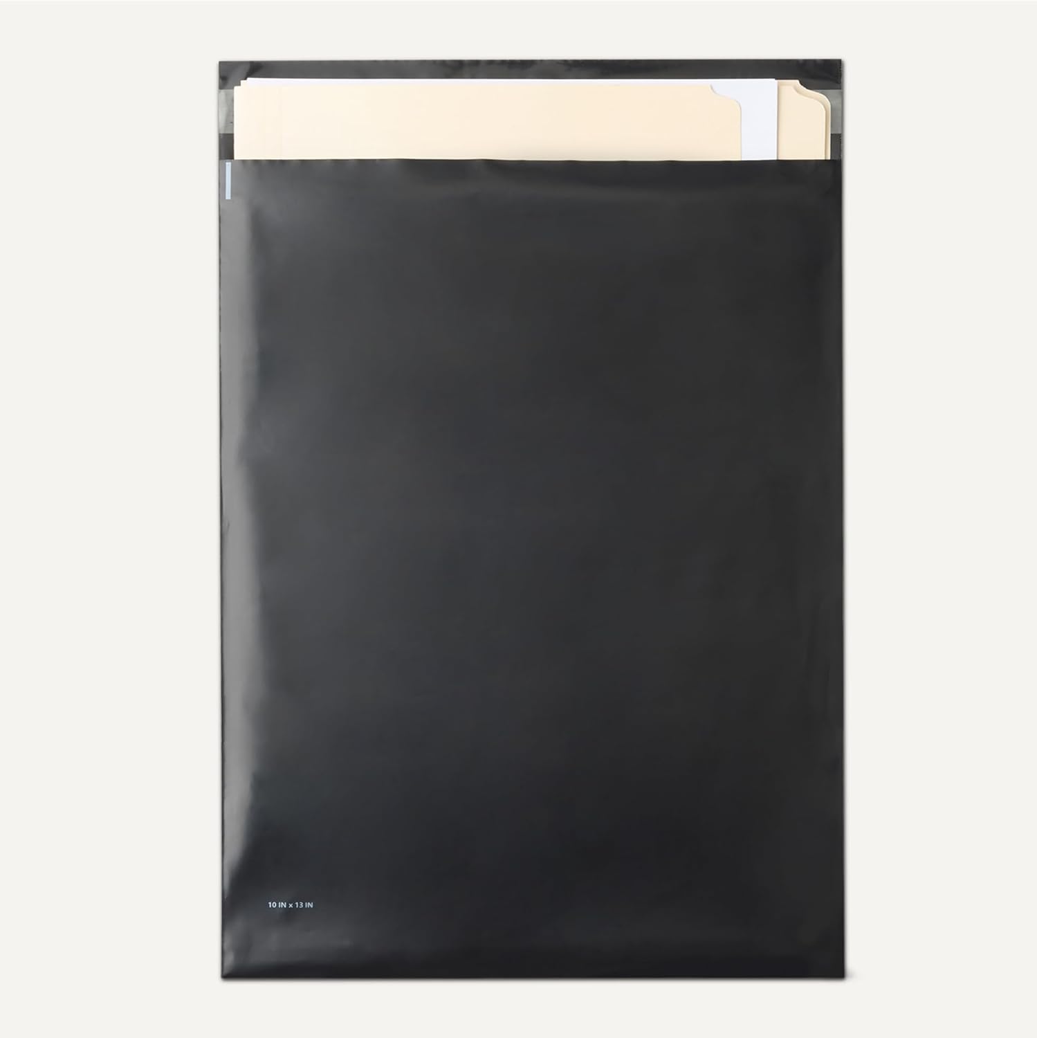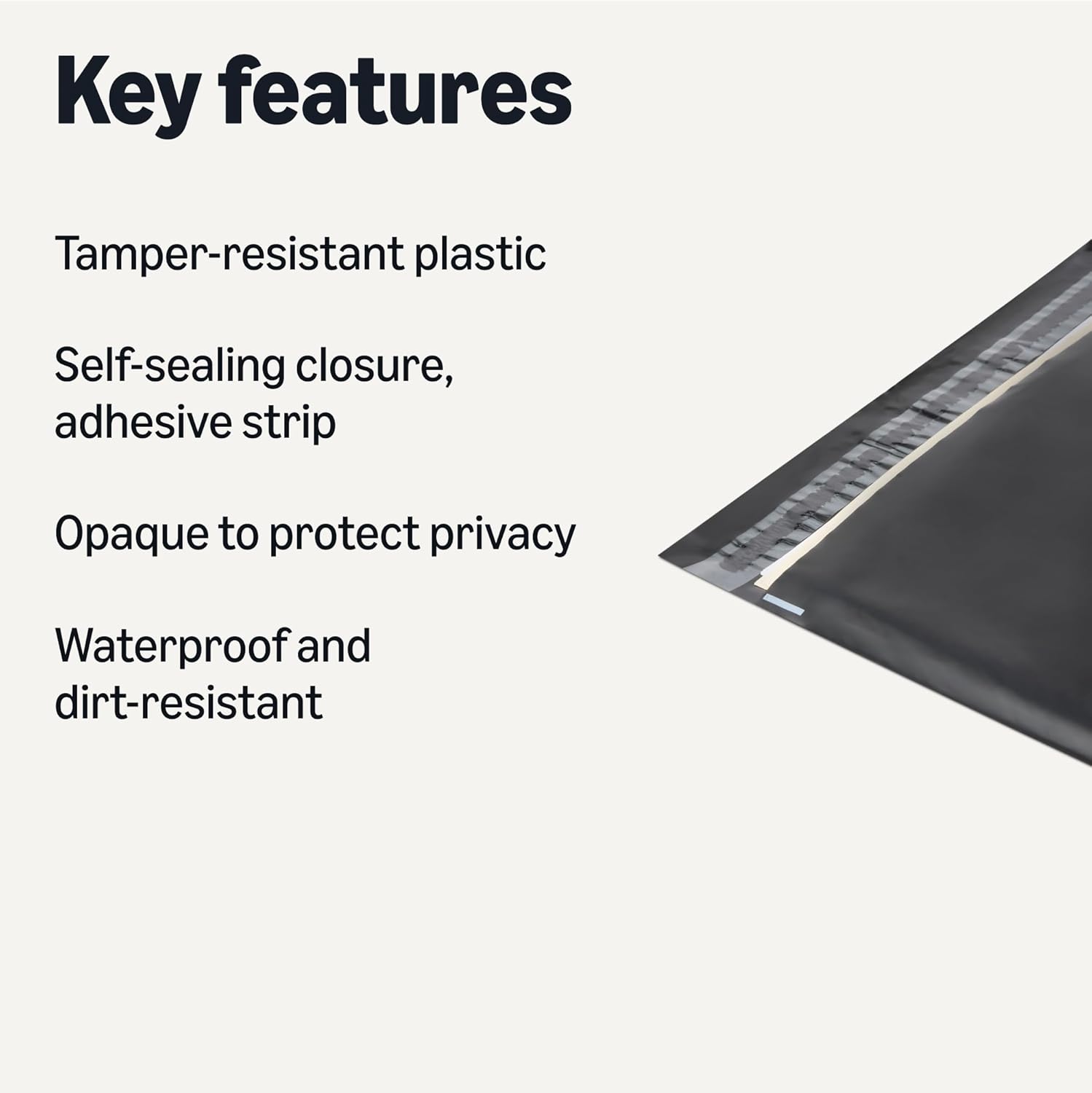 Amazon Basics Poly Mailers, Shipping Bags, Self-Sealing Envelopes, Black, 25.4 x 33 cm, 100 Pack