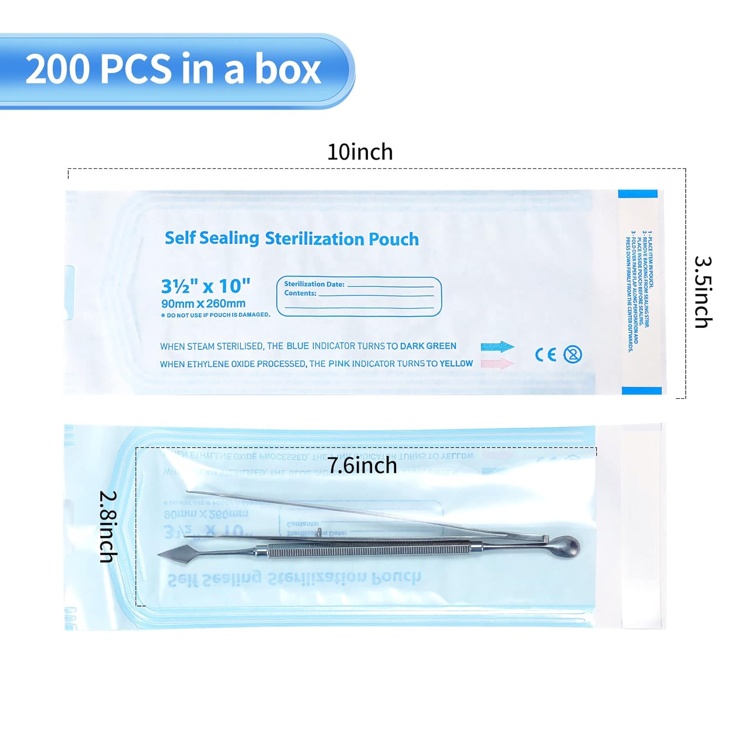 Each package contains 200 self-seal sterilization pouches.