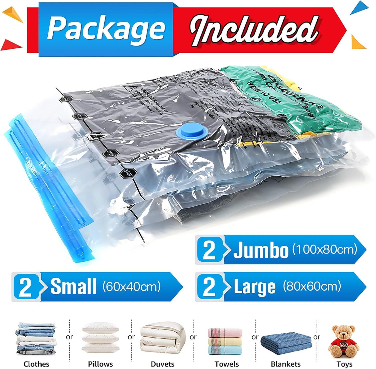 BoxLegend Vacuum Storage Bags 6 Pack Space Saving Bags 2 Jumbo 100x80cm + 2 Large 80x60cm + 2 Small 60x40cm Vacuum Bags Double Zip Seal & Leak Valve Reusable for Clothes Pillow Comforters Bedding