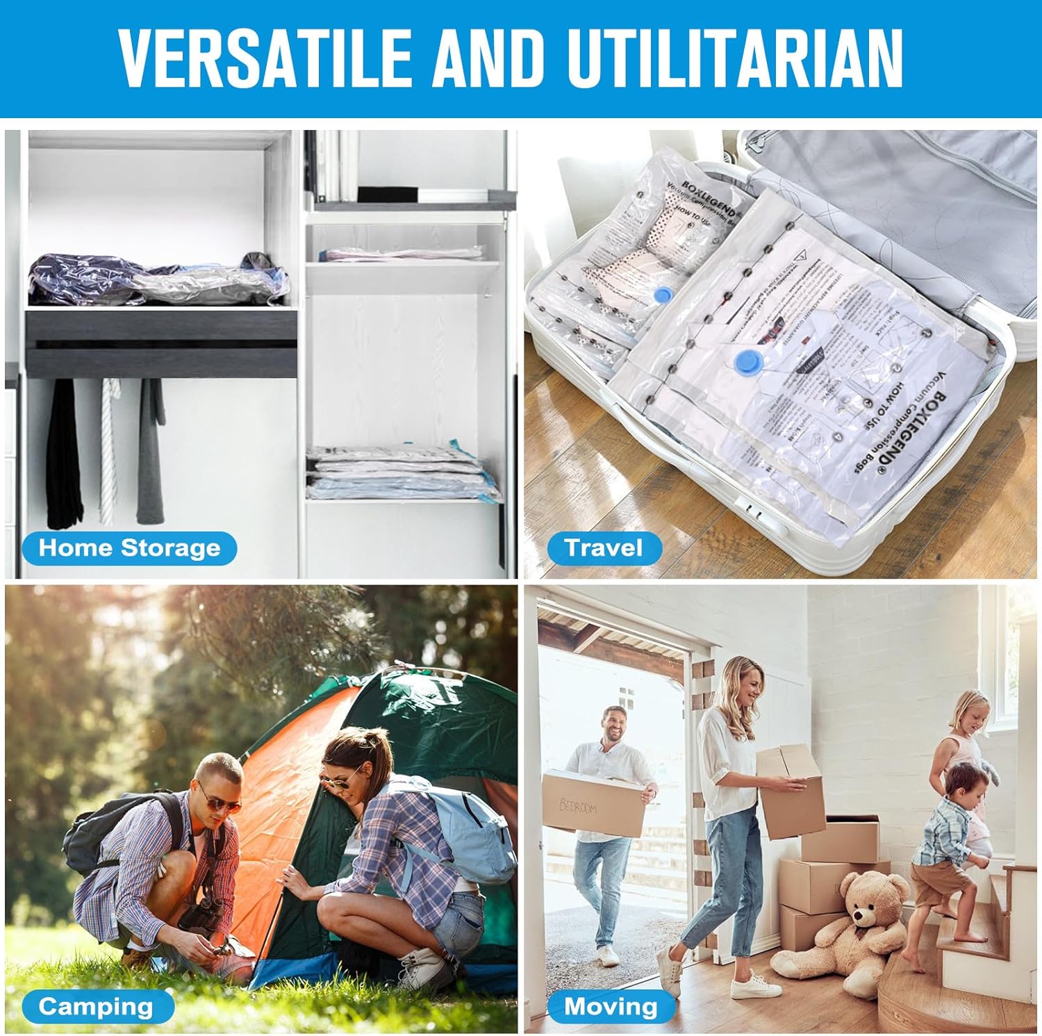 Each bag features a double zip seal and a leak valve, ensuring that your items remain protected from moisture and dust. These bags are reusable, making them an eco-friendly choice for storage. With BoxLegend vacuum bags, you can keep your wardrobe organized and your suitcase packed efficiently.