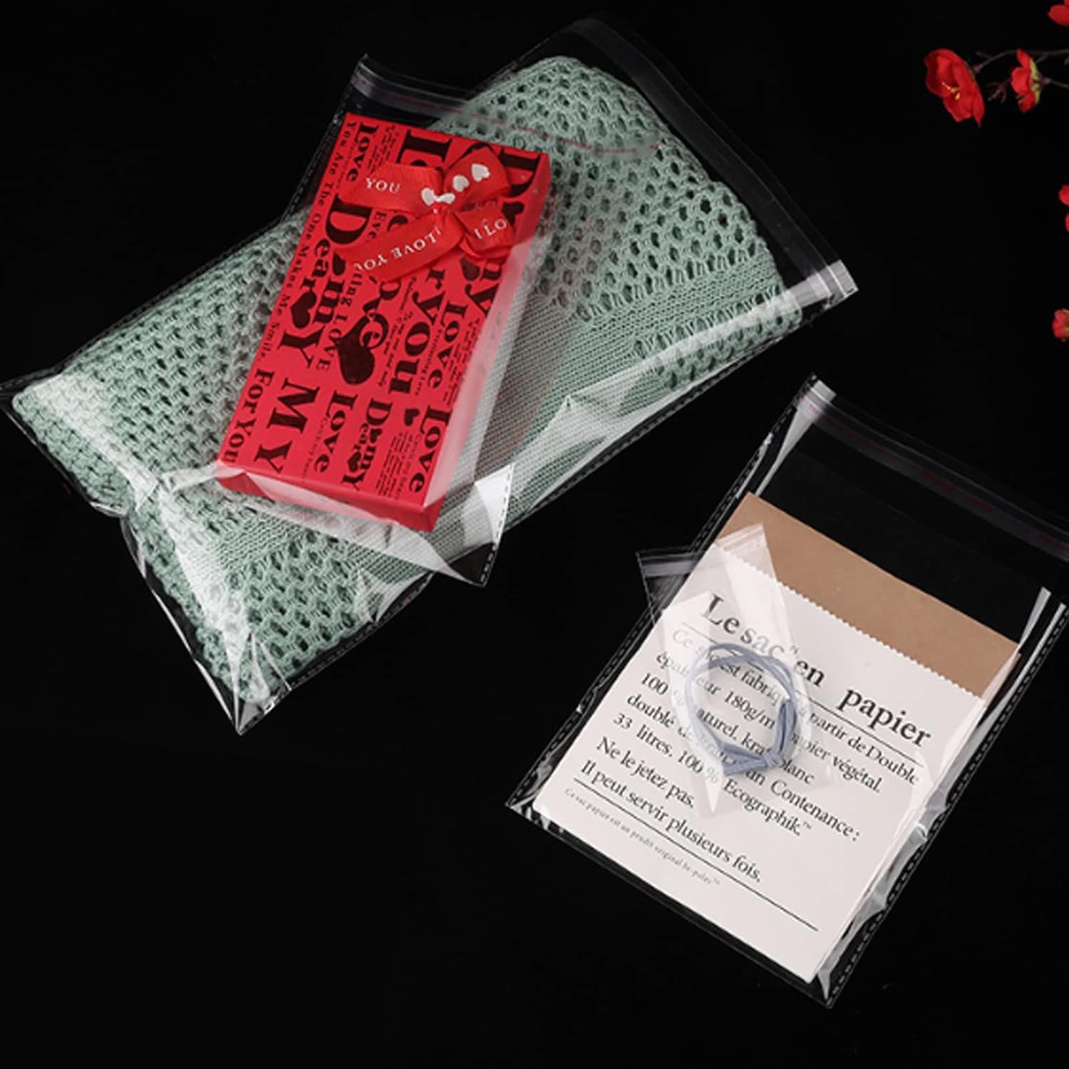 Cellophane Bags Pack of 100 (5 x 7 Inches) – Small Clear Adhesive Plastic Bags for Sweets, Cookies, Gifts, Jewellery, Soap, Chocolates – Self Seal