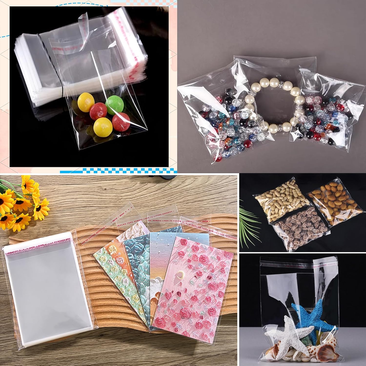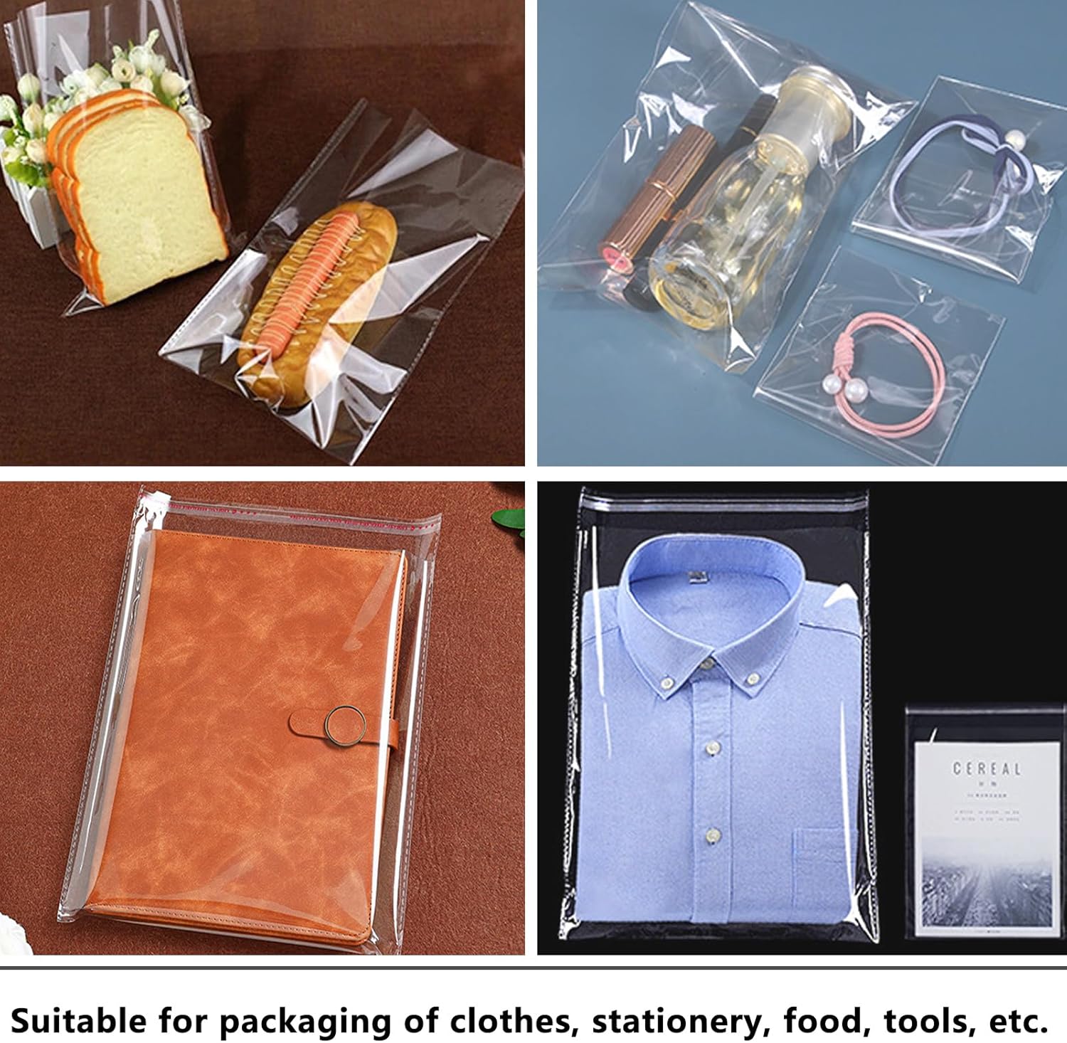 Cellophane Bags Pack of 100, 6 x 9 Inch Small Clear Cellophane Sweet Cookie Bags, Food Safe, Seal Clear Self-Adhesive OPP Display Sealable Bags for Cookies, Sweets, Envelopes, Gifts, Cards, Pictures